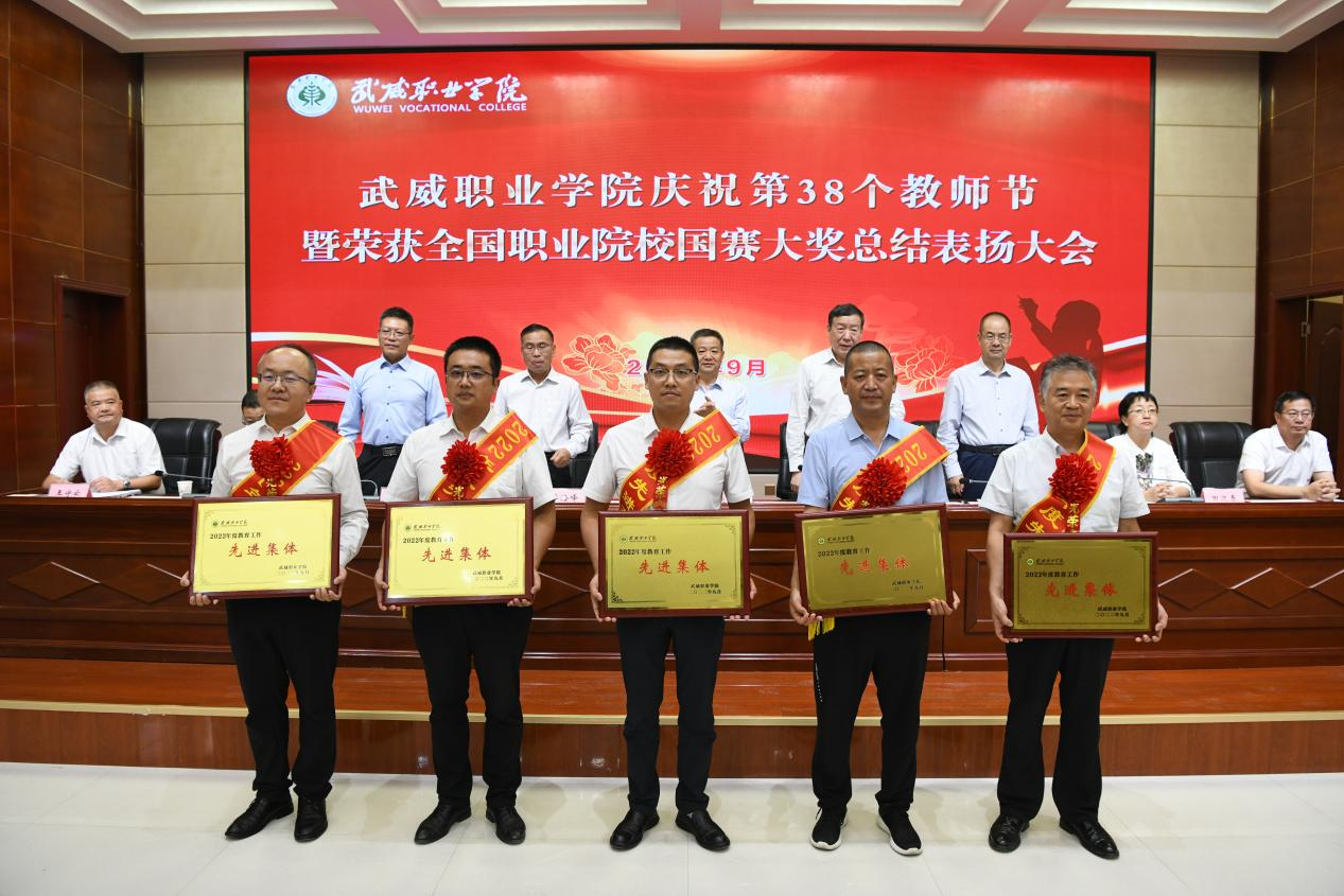 學校領導分別宣讀了《武威職業(yè)學院關于表揚2022年教育工作先進集體和先進個人的決定》《武威職業(yè)學院關于認定(聘任)2022年“教書育人楷模”“教學名師”“教學能手”“教學新秀”“我最喜愛的老師”和“專業(yè)(學科)帶頭人”的決定》。楊存忠、李海峰和學校領導分別為獲獎者代表頒發(fā)榮譽證書。