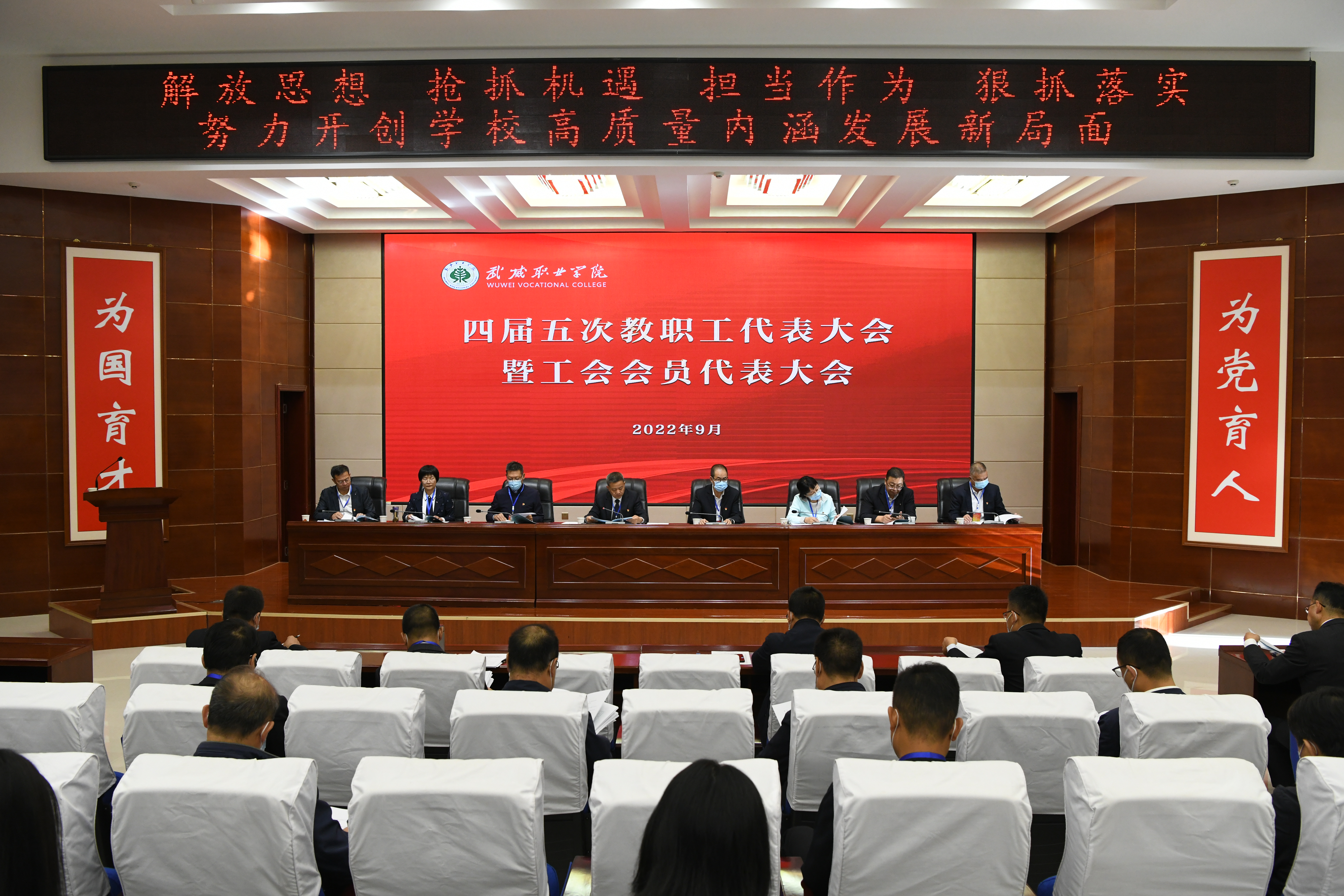 大會在雄壯的國歌聲中開幕,黨委書記、校長趙明作了題為《解放思想 搶抓機(jī)遇 擔(dān)當(dāng)作為 狠抓落實(shí) 努力開創(chuàng)學(xué)校高質(zhì)量發(fā)展新局面》的工作報告,系統(tǒng)回顧了四屆四次教職工(會員)代表大會以來學(xué)校事業(yè)發(fā)展所取得的顯著成績,分析了學(xué)校當(dāng)前面臨的形勢與存在的問題,明確了今后工作思路和主要工作舉措。副校長張開禮作了關(guān)于修訂《武威職業(yè)學(xué)院章程》的情況說明。大會以書面形式審議了《學(xué)校財務(wù)工作報告》《工會工作報告》《工會經(jīng)費(fèi)審查報告》。