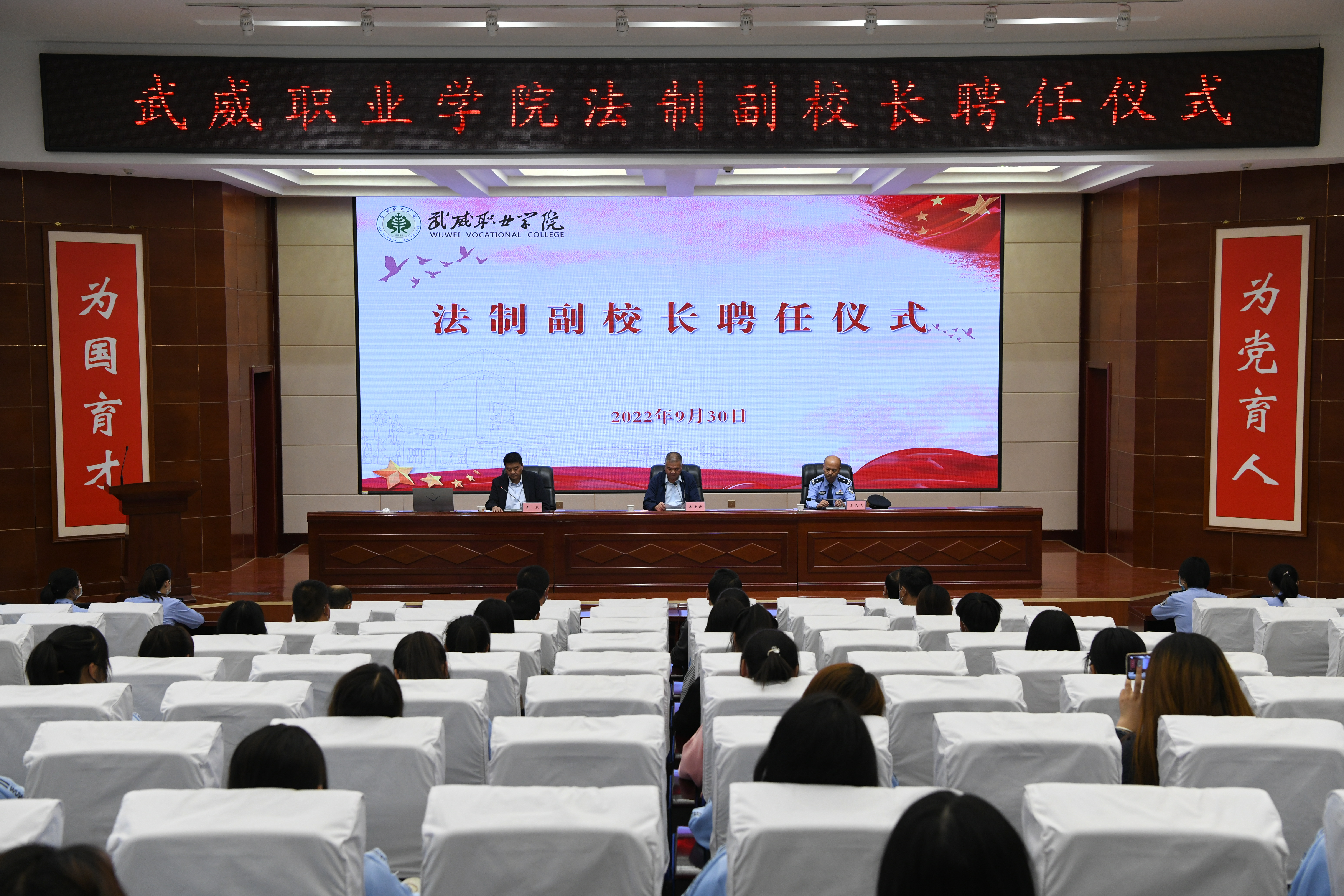 9月30日下午,學(xué)校在學(xué)生發(fā)展中心菁英廳舉行法制副校長(zhǎng)聘任儀式,武威市涼州區(qū)公安局西關(guān)派出所所長(zhǎng)于文達(dá)、西關(guān)派出所民警代表,學(xué)校相關(guān)部門、各二級(jí)學(xué)院負(fù)責(zé)人及師生代表參加了聘任儀式,學(xué)校黨委委員、副校長(zhǎng)王守云出席了儀式,儀式由學(xué)校安全保衛(wèi)處負(fù)責(zé)人李欣主持。