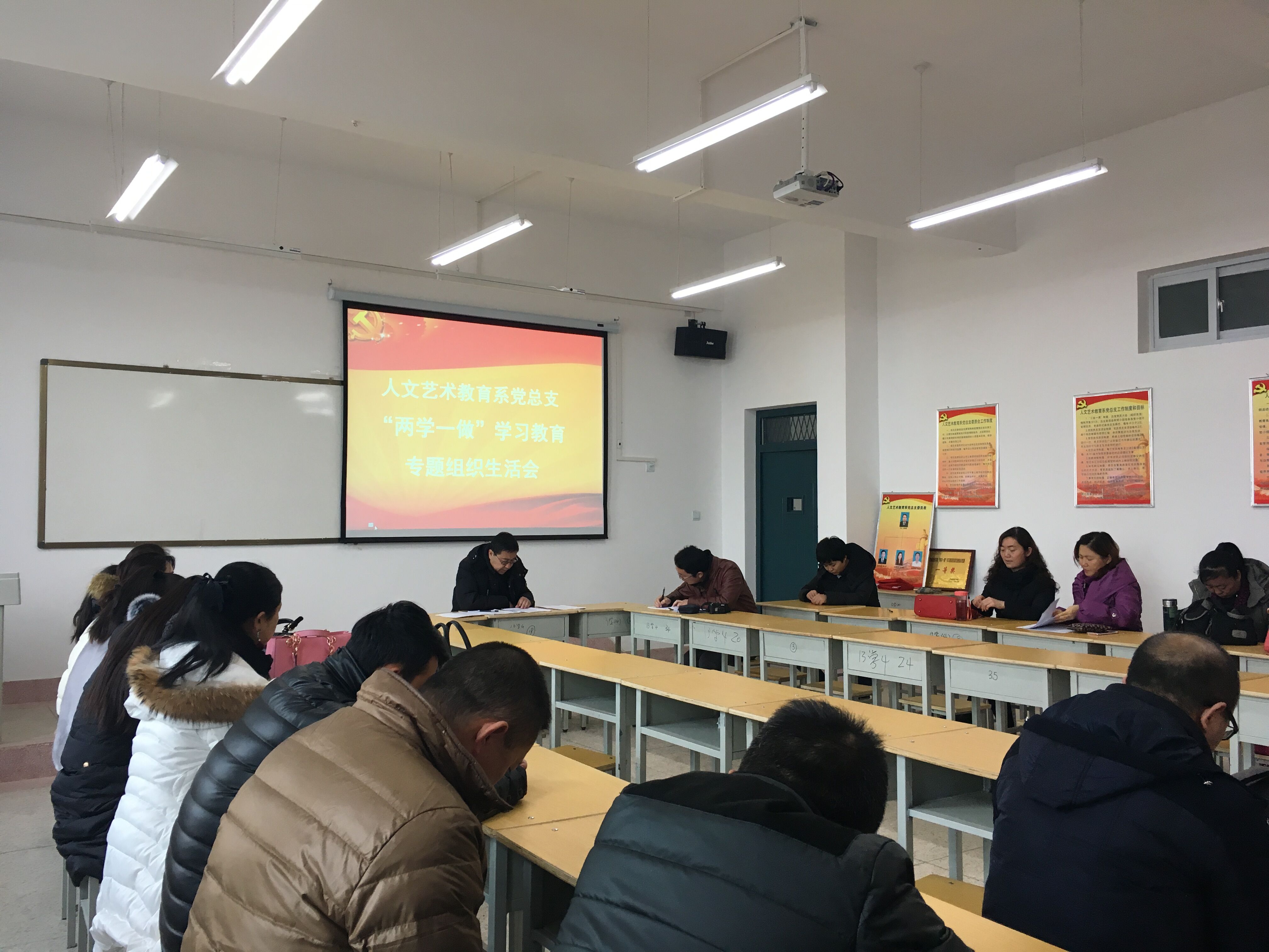 1月10日下午,人文藝術(shù)教育系黨總支在勵(lì)勤樓403黨員活動(dòng)室召開(kāi)了“兩學(xué)一做”學(xué)習(xí)教育專(zhuān)題組織生活會(huì)和民主評(píng)議黨員大會(huì),會(huì)議由系黨總支書(shū)記胡靜峰同志主持,全體黨員及部分群眾參加了會(huì)議。