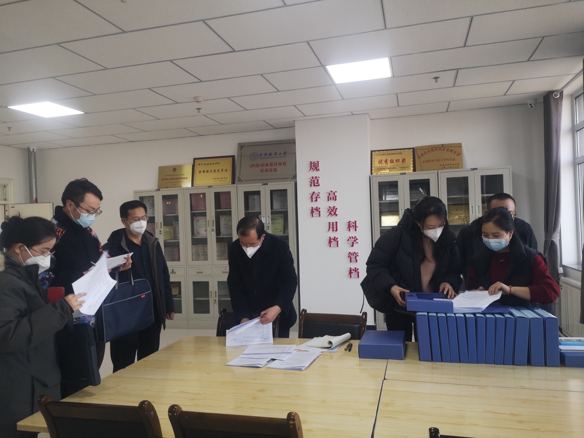 在檔案室,檢查組通過訪談交流、查閱資料和實地查看,全面、系統(tǒng)地檢查了學校檔案工作綜合開展情況及檔案收集、整理、保管、利用等情況,詳細查看了檔案相關法律法規(guī)制度的落實、檔案信息化建設以及檔案庫房設施設備和安全措施等情況。在實地檢查時,檢查組對我校檔案工作開展及檔案室建設情況給予肯定,并對我校信息化檔案室建設提出指導性的意見和建議。