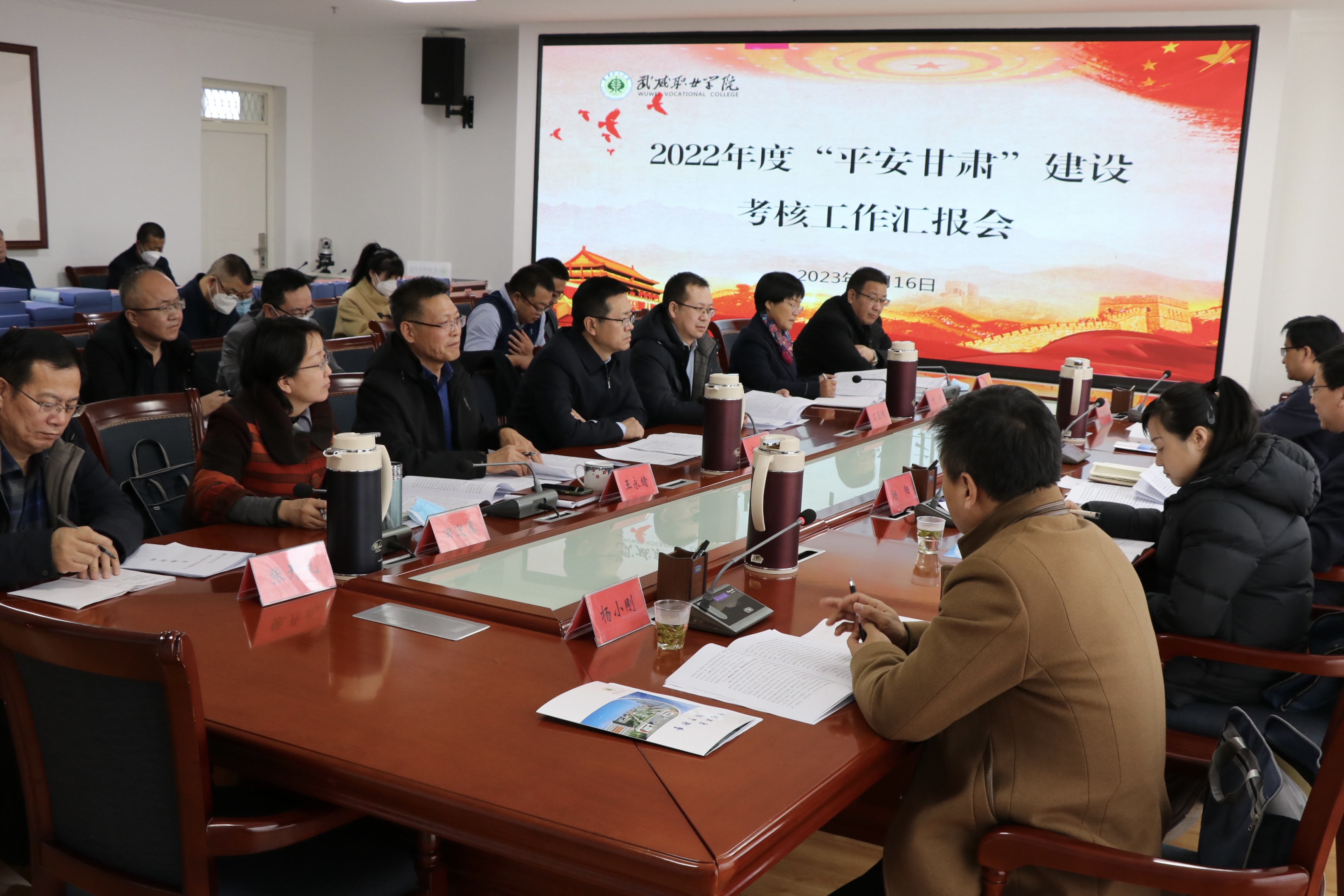 2月16日下午,平安甘肅建設(shè)第七考評(píng)組組長、省信訪局副局長劉全生帶領(lǐng)考評(píng)組一行來學(xué)校,檢查考核學(xué)校2022年度平安建設(shè)工作。學(xué)校黨委委員、副校長王永緒主持會(huì)議,武威市市委政法委副書記寧生剛、在家校領(lǐng)導(dǎo)班子成員,各部門、二級(jí)學(xué)院負(fù)責(zé)人參加匯報(bào)會(huì)。