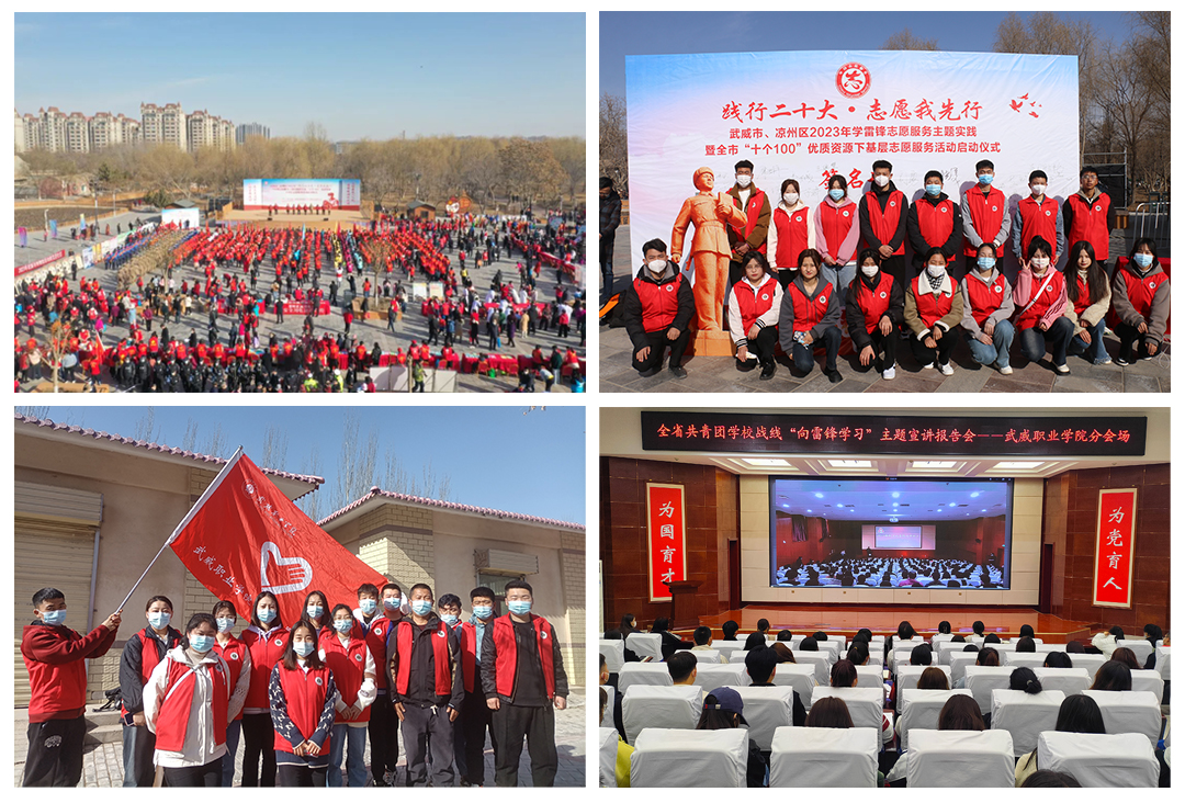 活儀式結(jié)束后,校團委根據(jù)上級組織安排部署,3月5日組織青年志愿者觀看了全省共青團學(xué)校戰(zhàn)線“向雷鋒學(xué)習(xí)”主題宣講線上直播報告會,組隊參加了武威市、涼州區(qū)2023年“踐行二十大 志愿我先行”學(xué)雷鋒志愿服務(wù)主題實踐暨全市“十個100”優(yōu)質(zhì)資源下基層志愿服務(wù)活動啟動儀式,3月6日組隊參加了2023年武威市人體器官捐獻緬懷紀(jì)念活動,為學(xué)校學(xué)雷鋒志愿服務(wù)月活動的熱烈開展拉開了序幕,奠定了基礎(chǔ)。