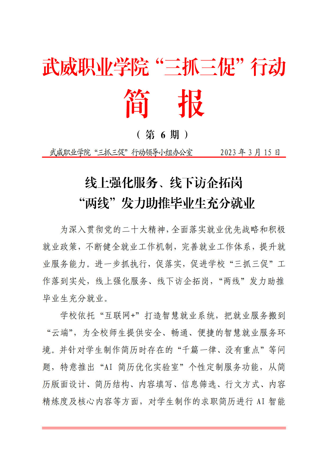 簡報第6期:線上強化服務(wù)、線下訪企拓崗,“兩線”發(fā)力助推畢業(yè)生充分就業(yè)
