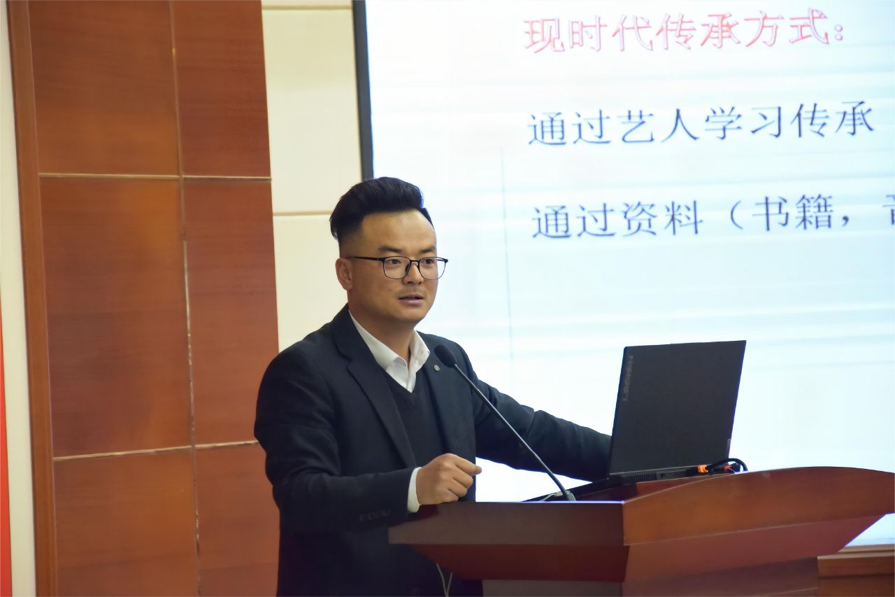 賈旭峰是近年來(lái)活躍在武威非遺舞臺(tái)上的一顆新星,他向同學(xué)們介紹了涼州賢孝的腔調(diào)、唱法及唱詞涵義。賈旭峰飽含深情地介紹了自己做為一名新時(shí)代的青年,去做涼州賢孝傳唱這樣古老的工作,不被他人理解、深受嘲諷的情況下堅(jiān)持信念、不斷創(chuàng)新的心路歷程,如今他已是擁有近十萬(wàn)粉絲的網(wǎng)絡(luò)達(dá)人,為涼州賢孝的傳播做出了貢獻(xiàn)。同時(shí),他也呼吁同學(xué)們擔(dān)當(dāng)起振興傳統(tǒng)文化的重任,讓非遺傳承流光溢彩。講座最后,同學(xué)們還饒有興致地向賈旭峰學(xué)習(xí)演唱了賢孝片斷。