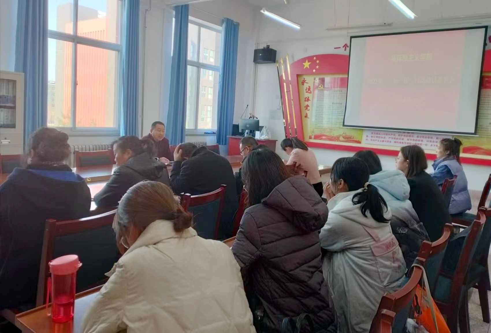 始終把黨的政治建設(shè)擺在首位,緊緊圍繞學(xué)懂弄通做實黨的創(chuàng)新理論,堅持不懈用習(xí)近平新時代中國特色社會主義思想武裝頭腦、凝心鑄魂,以學(xué)習(xí)好宣傳好貫徹好黨的二十大精神為首要任務(wù),立足特色優(yōu)勢資源,發(fā)揮馬院作為傳播黨的理論和宣傳黨的主張的思想陣地和熔爐作用。通過開展系列學(xué)習(xí)活動,學(xué)習(xí)習(xí)近平總書記系列重要講話精神3次、學(xué)習(xí)習(xí)近平總書記關(guān)于教育的系列論述2次、學(xué)習(xí)黨的二十大精神3次、開展紅色文化學(xué)習(xí)和教育活動1次、探討思政教育課程教學(xué)改革工作學(xué)習(xí)2次。引導(dǎo)黨員教師增強“四個意識”,堅定“四個自信”,做到“兩個維護”,不斷提高政治判斷力、政治領(lǐng)悟力、政治執(zhí)行力。