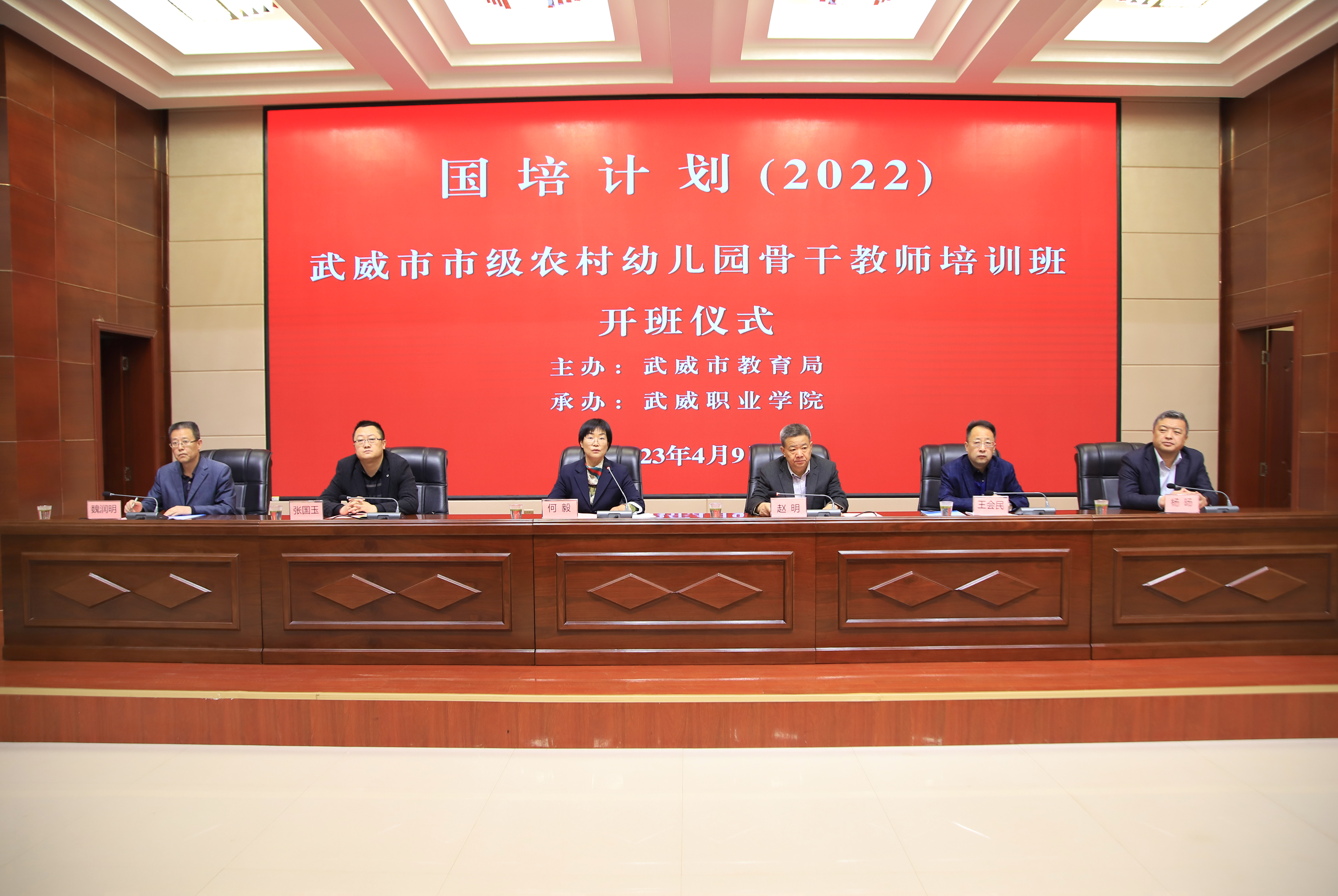 2023年4月9日上午,“國培計劃(2022)”武威市市級農(nóng)村幼兒園骨干教師培訓班開班儀式在學院菁英廳舉辦,武威市教育局、武威職業(yè)學院領導及相關科室負責人參加開班儀式。