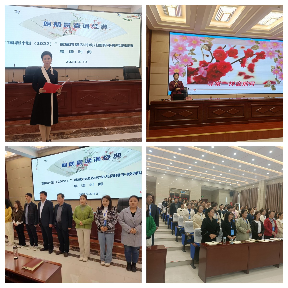 相約晨光,不負韶華。每天的培訓從元氣滿滿的“郎朗晨讀誦經(jīng)典”開始,袁潔、趙穎等老師作為領讀人帶領全體學員誦讀詩詞、經(jīng)典名篇。袁潔老師領讀的《涼州詞》、趙穎老師領讀的《祖國啊,我親愛的祖國》,時而豪邁,時而溫婉,讓培訓學員感受到與眾不同的浸潤式培訓體驗。