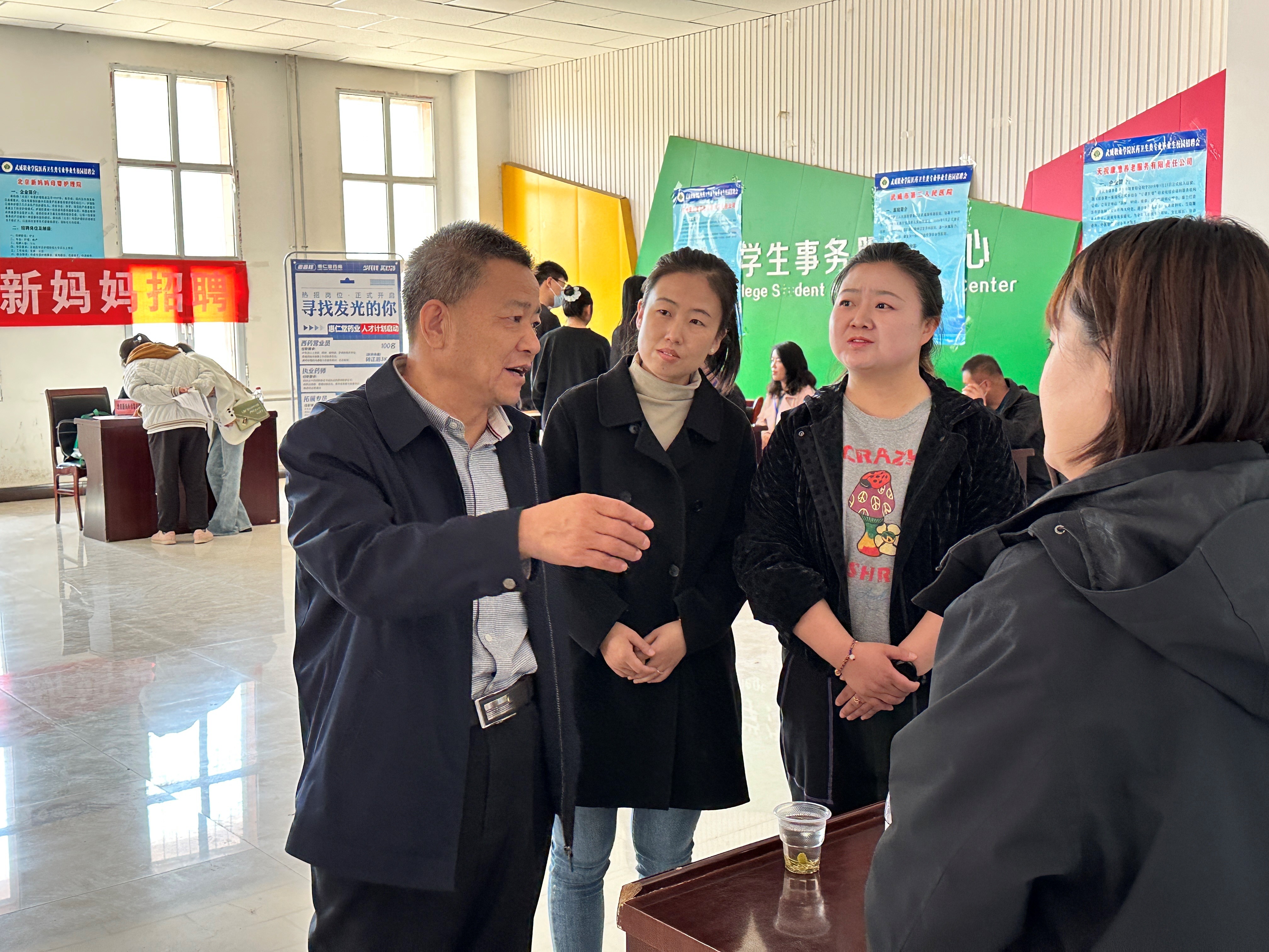 為深入學(xué)習(xí)貫徹黨的二十大精神,落實黨中央、國務(wù)院、省委、省政府對高校畢業(yè)生就業(yè)創(chuàng)業(yè)工作的決策部署,把促進高校畢業(yè)生就業(yè)工作擺在更加突出的位置,結(jié)合“三抓三促”行動推進2023屆畢業(yè)生充分就業(yè),滿足畢業(yè)生多層次、全方位、個性化化的就業(yè)需求。4月14日,學(xué)院在大學(xué)生活動中心舉辦了“搭建就業(yè)平臺 共建美好未來-武威職業(yè)學(xué)院2023屆醫(yī)藥衛(wèi)生類專業(yè)畢業(yè)生校園專場招聘會”。作為今年首次在校園區(qū)域開展的專場招聘會,受到了學(xué)院各級領(lǐng)導(dǎo)的高度重視。學(xué)院領(lǐng)導(dǎo)、2020級班主任、畢業(yè)生參加專場招聘會。