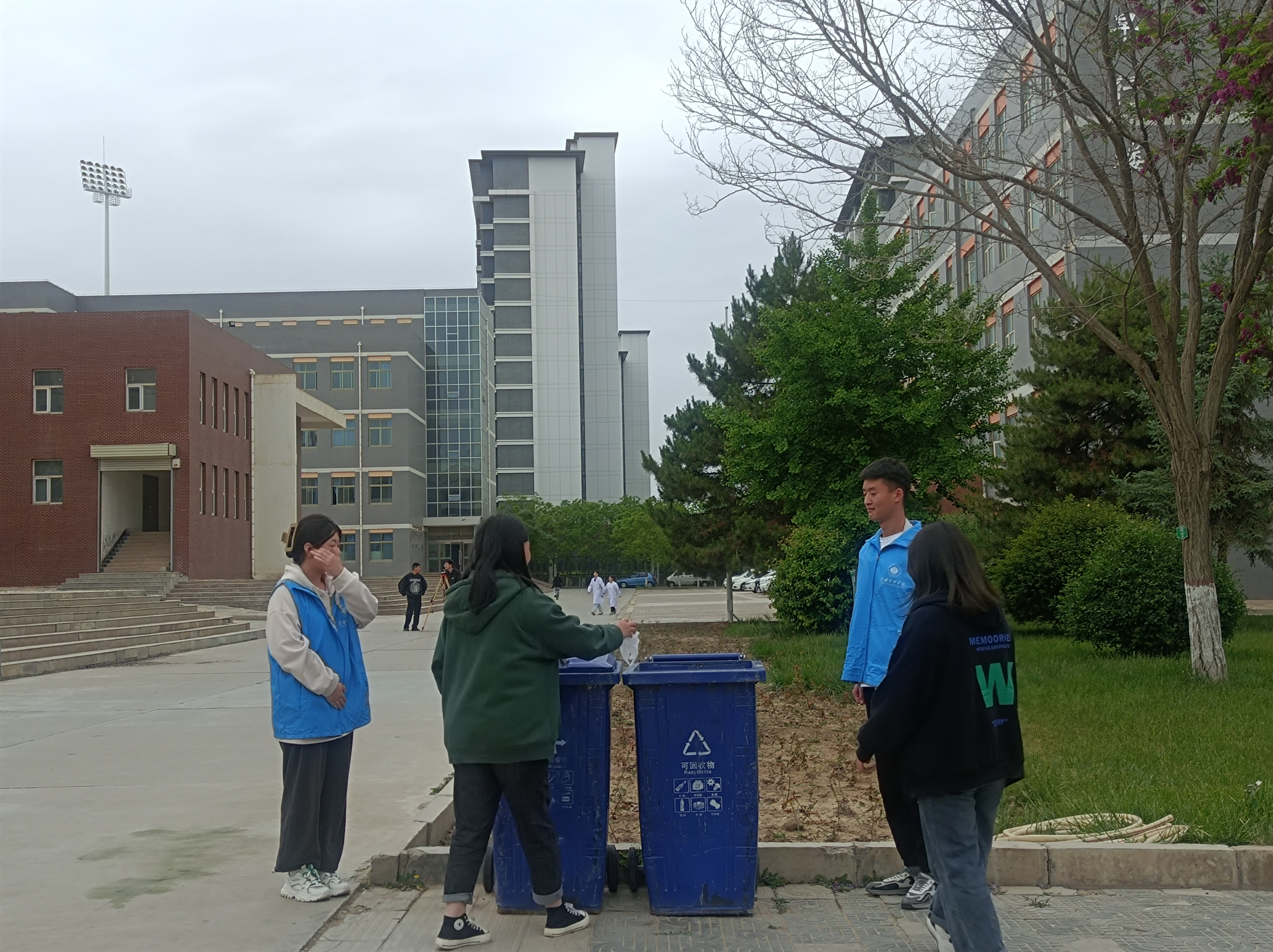 ? ? ? 志愿者們 積極參與生活垃圾分類宣傳,傳播“生態(tài)文明,從我做起"的生活理念,主動(dòng)做垃圾分類知識(shí)的宣傳者、文明生活理念的倡導(dǎo)者、垃圾分類收集的志愿者,以實(shí)際行動(dòng)帶動(dòng)身邊人參與生活垃圾分類和勞動(dòng)實(shí)踐中來(lái)。積極參加學(xué)校垃圾分類工作,從自身做起、從現(xiàn)在做起,正確分類垃圾,主動(dòng)糾正錯(cuò)誤的垃圾分類習(xí)慣,自覺(jué)將學(xué)習(xí)、工作、生活過(guò)程中產(chǎn)生的垃圾進(jìn)行分類收集和投放,不隨意丟棄。志愿者積極的奔走在校園每一個(gè)角落,引導(dǎo)同學(xué)們做好垃圾分類,為同學(xué)們樹(shù)立起垃圾分類的意識(shí)。