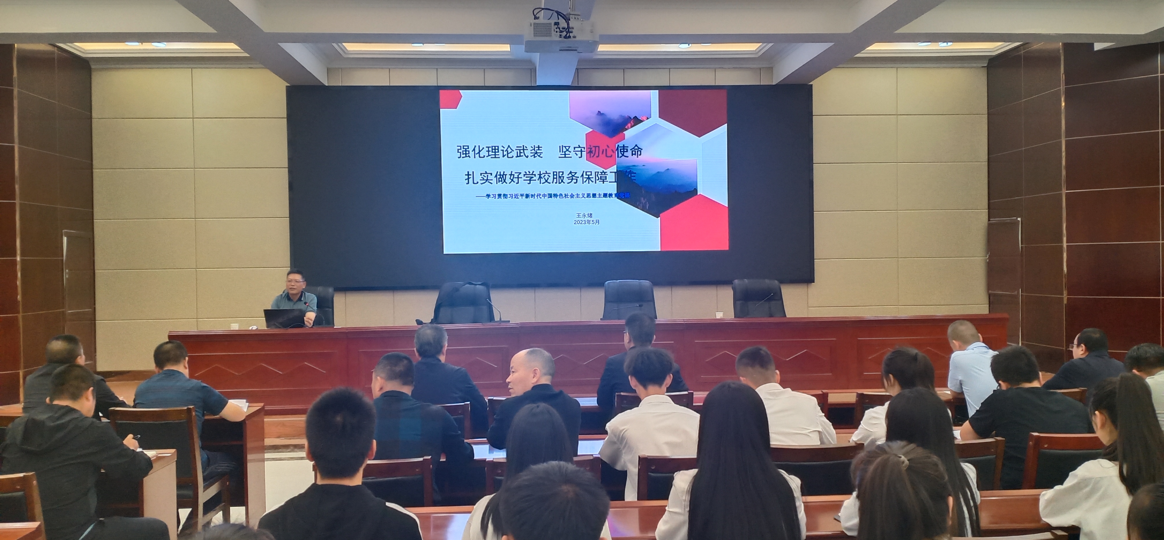 黨課緊緊圍繞學習貫徹習近平新時代中國特色社會主義思想主題教育,從“全面學習貫徹習近平新時代中國特色社會主義思想”“學習貫徹習近平新時代中國特色社會主義思想收獲和體會”“學習貫徹習近平新時代中國特色社會主義思想,扎實推動服務保障工作再提升”等三個方面對學校后勤服務保障工作提出了新要求。