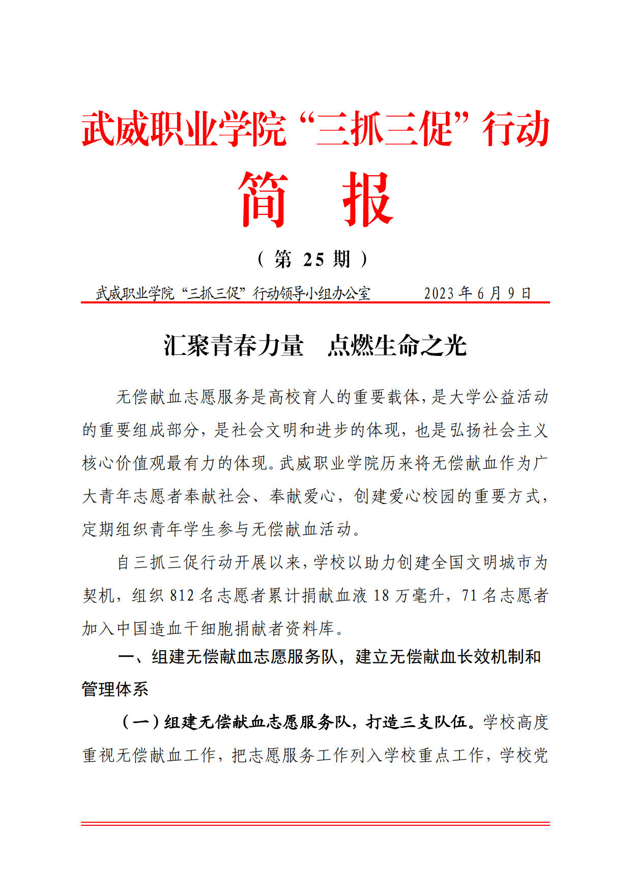 簡(jiǎn)報(bào)第25期:匯聚青春力量 點(diǎn)燃生命之光
