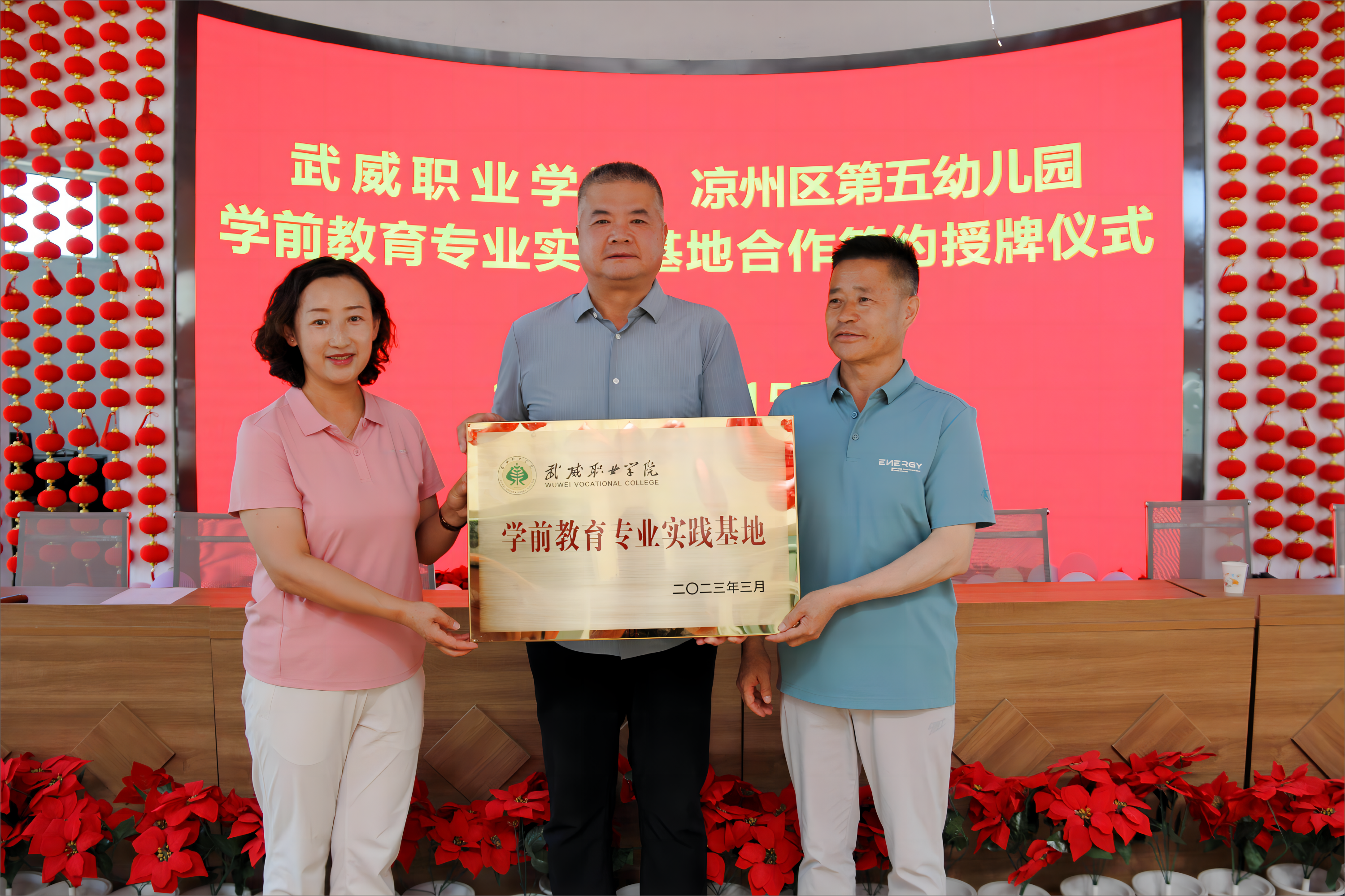 6月15日,武威職業(yè)學院學前教育專業(yè)實踐基地授牌儀式分別在武威市第二實驗幼兒園、涼州區(qū)第五幼兒園舉行。學校黨委委員、副校長王守云,武威市第二實驗幼兒園園長羅亞莉,涼州區(qū)第五幼兒園園長張俊山出席授牌儀式。藝術(shù)與教育學院教師代表,市區(qū)幼兒園領(lǐng)導班子成員及部分教師參加授牌儀式。