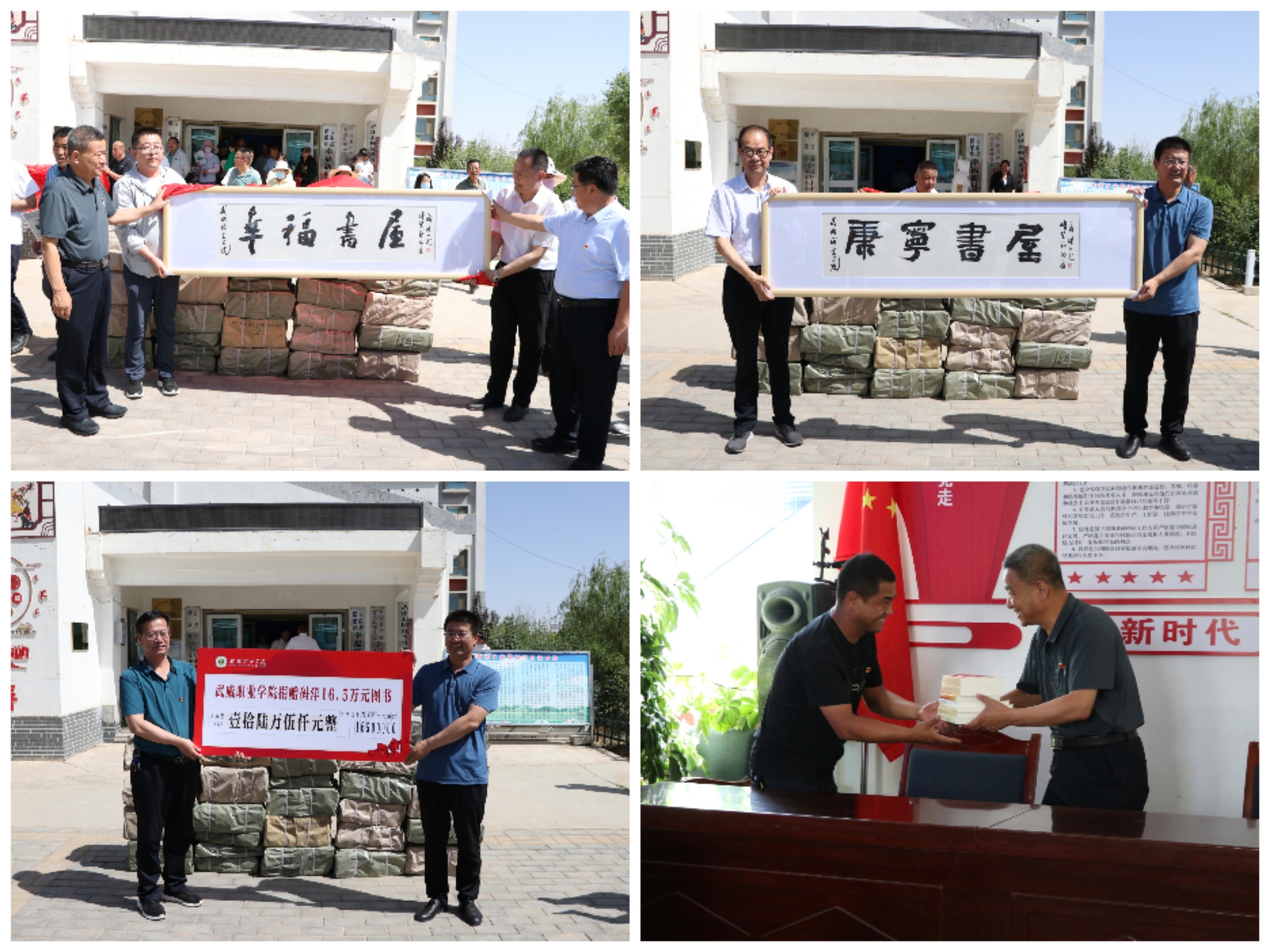 趙明、何文國就文化振興項目進行了深入交流,簽訂了《定向幫扶捐贈協(xié)議》《武威職業(yè)學(xué)院在橫梁鄉(xiāng)幸福新村、康寧新村捐建開放式農(nóng)家書屋的協(xié)議書》,雙方代表為幸福書屋、康寧書屋揭牌,學(xué)校為橫梁鄉(xiāng)捐贈文化振興專項資金13萬元和碼洋16.5萬元的圖書。