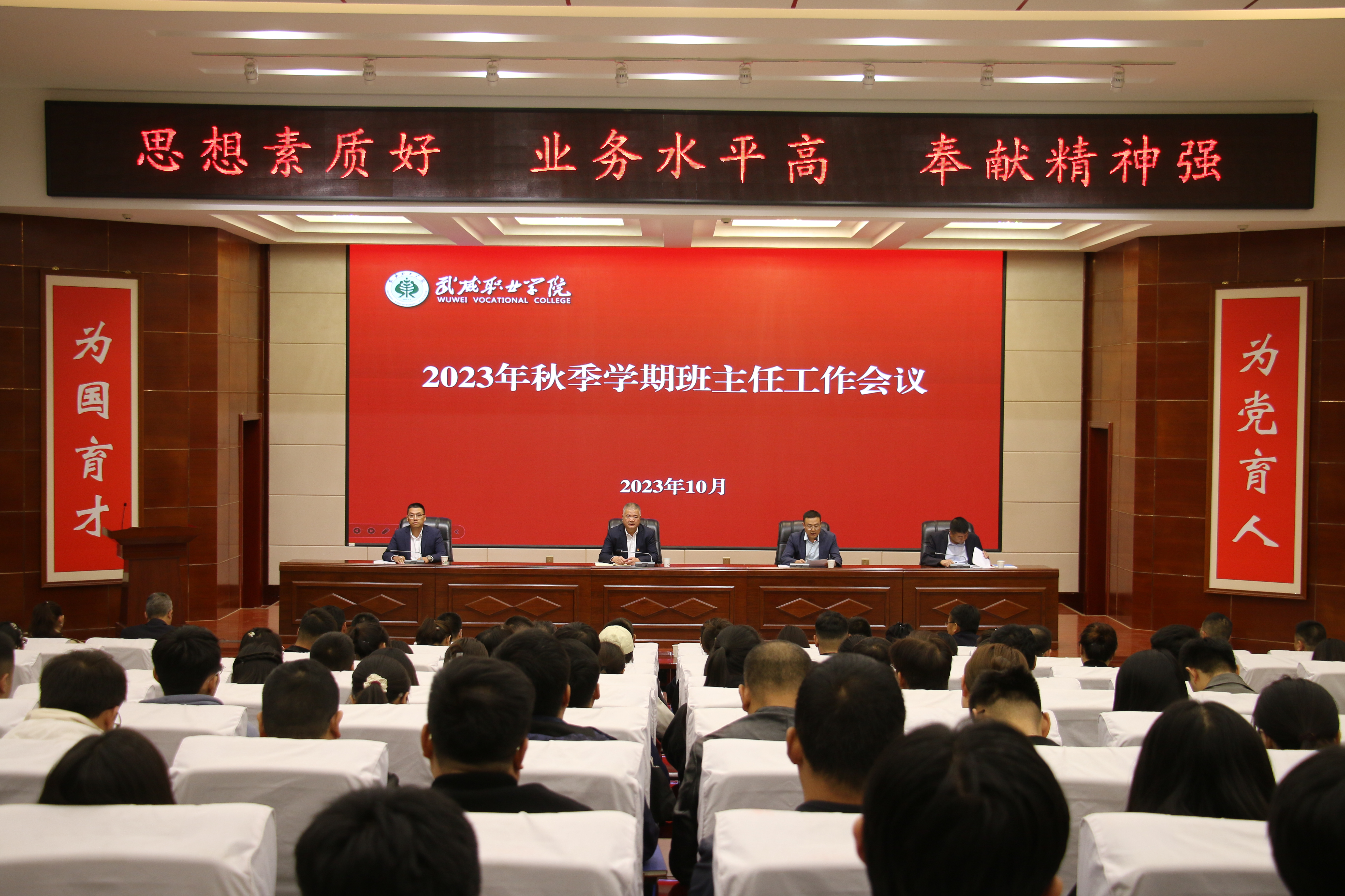 會議上,高鵬堂領學了《武威職業(yè)學院班主任工作實施辦法》《武威職業(yè)學院班主任工作考核辦法》等制度文件,結(jié)合具體工作提出要求;招生就業(yè)處負責人董鵬、安全保衛(wèi)處負責人李欣就班主任相關工作進行了說明和要求;中科低碳新能源技術(shù)學院負責人胡建宏針對班導師工作進行了交流發(fā)言,護理學院黨總支書記張建輝針對班主任管理工作進行了交流發(fā)言,武威市優(yōu)秀班主任獲得者、經(jīng)濟管理學院教師姚盈就班主任工作經(jīng)驗和心得進行了交流發(fā)言。