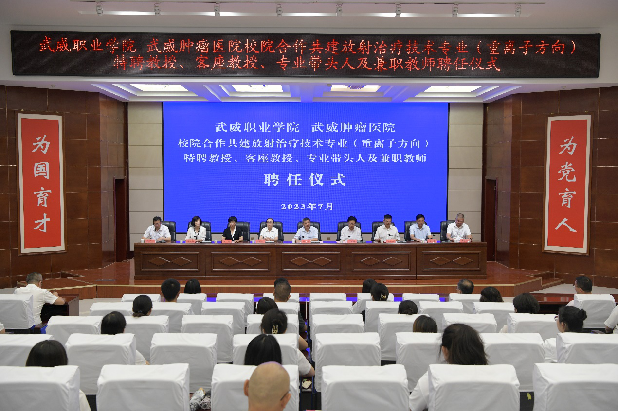 學(xué)校與武威腫瘤醫(yī)院舉行校院合作共建放射治療技術(shù)專業(yè)(重離子方向)特聘教授、客座教授、專業(yè)帶頭人和兼職教師聘任儀式