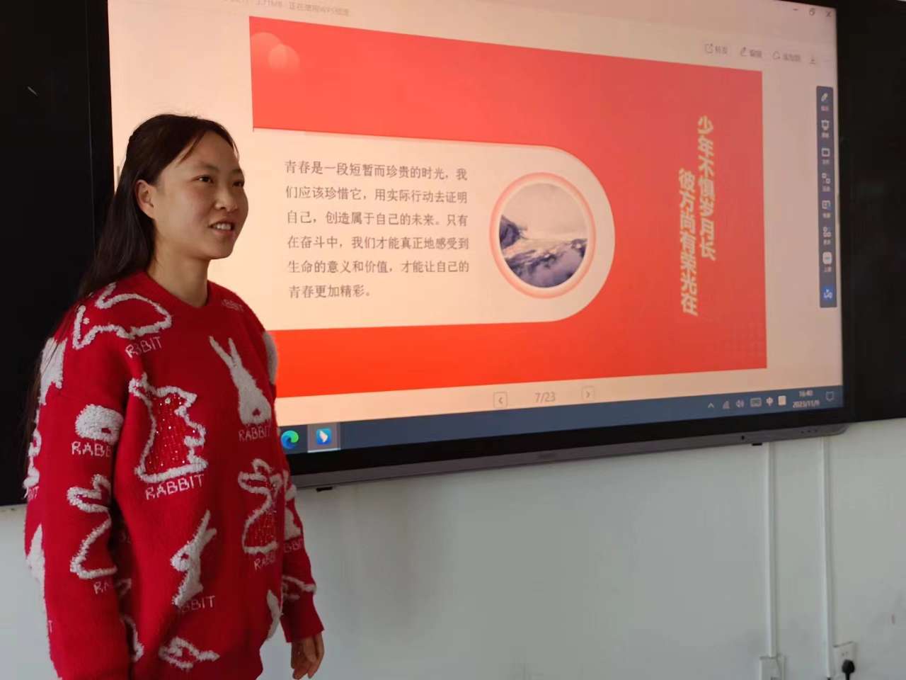 藝術(shù)與教育學院2021級學生后麗婷分享了自己參加“三下鄉(xiāng)”社會實踐服務團隊,走進基層社區(qū)開展志愿服務活動,在基層體悟中不斷增強責任感和使命感,在社會課堂中“受教育、長才干、作貢獻”的事跡。她期盼各位學子做新時代好青年,如螢火一般,有一分熱便發(fā)一分光,以奮斗來點亮青春最亮麗的底色。