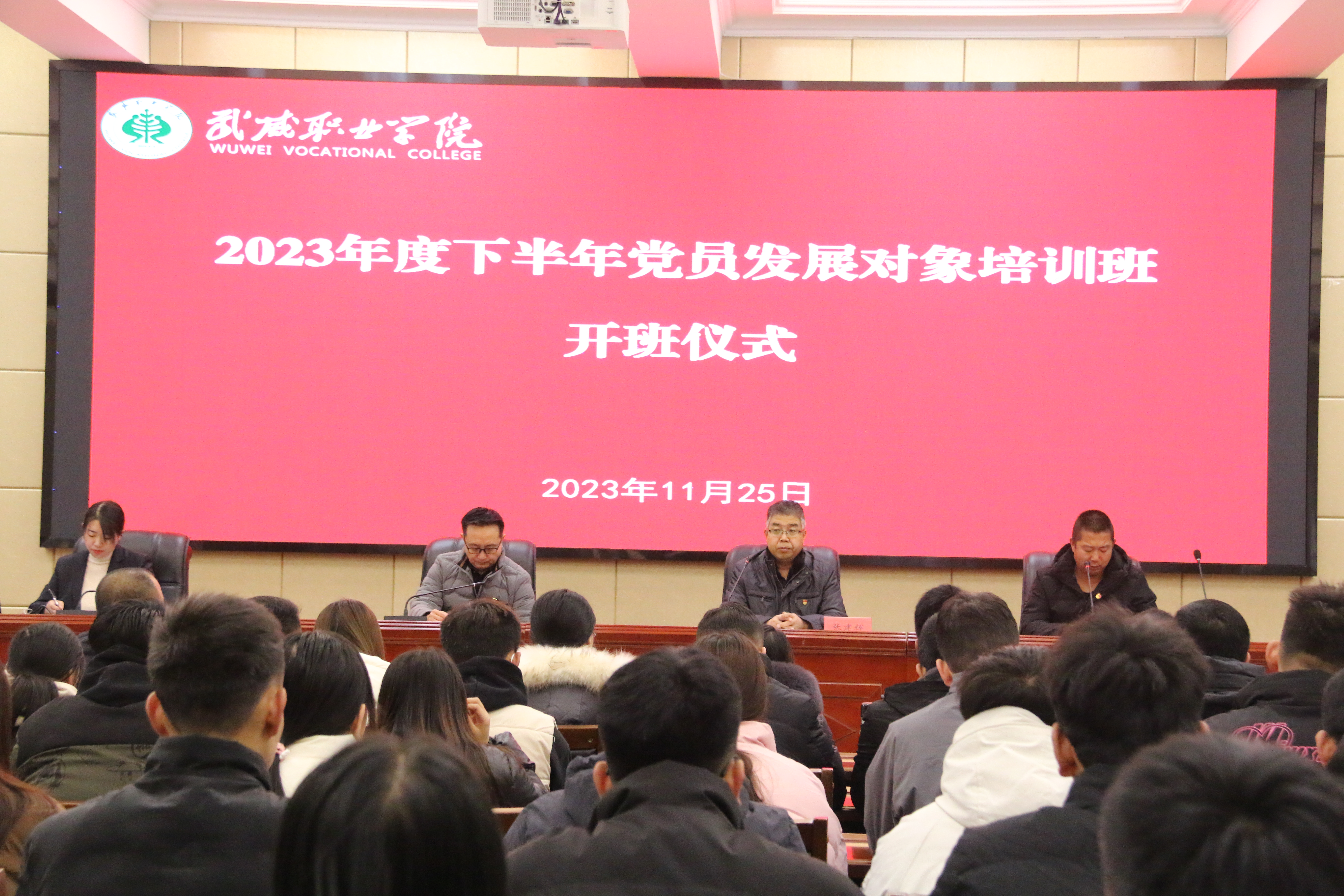 為進(jìn)一步做好黨員發(fā)展工作,嚴(yán)把黨員入口關(guān),11月25日上午,學(xué)校2023年下半年黨員發(fā)展對(duì)象培訓(xùn)班開(kāi)班典禮在行樹(shù)樓北側(cè)報(bào)告廳舉行,本次培訓(xùn)班由學(xué)校黨委黨校主辦,護(hù)理學(xué)院承辦。組織人事處負(fù)責(zé)人任陶、護(hù)理學(xué)院黨總支書(shū)記張建輝及各總支、直屬黨支部組織委員參加開(kāi)班儀式,來(lái)自各基層黨組織的教師、學(xué)生共92名黨員發(fā)展對(duì)象參加本次培訓(xùn)。