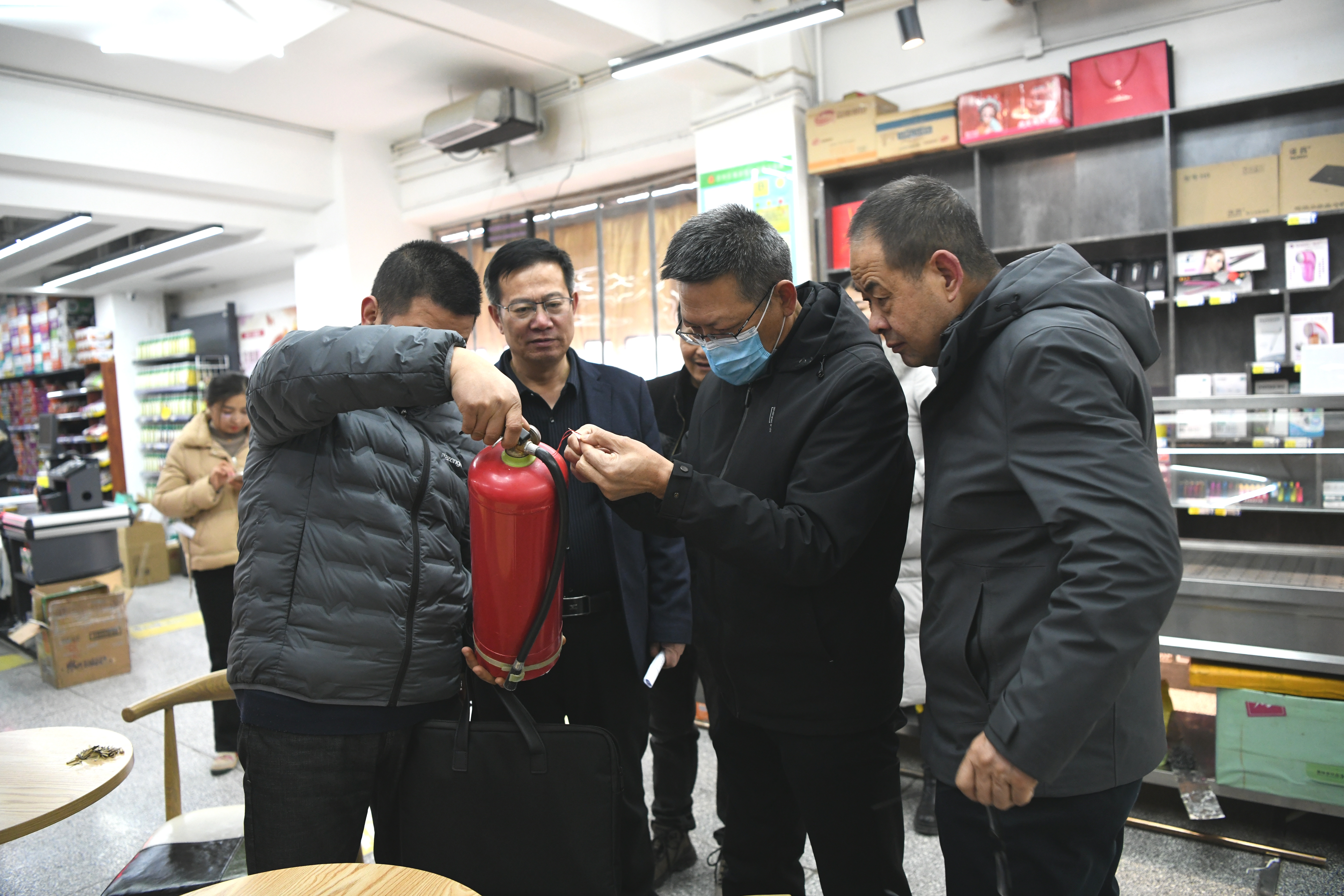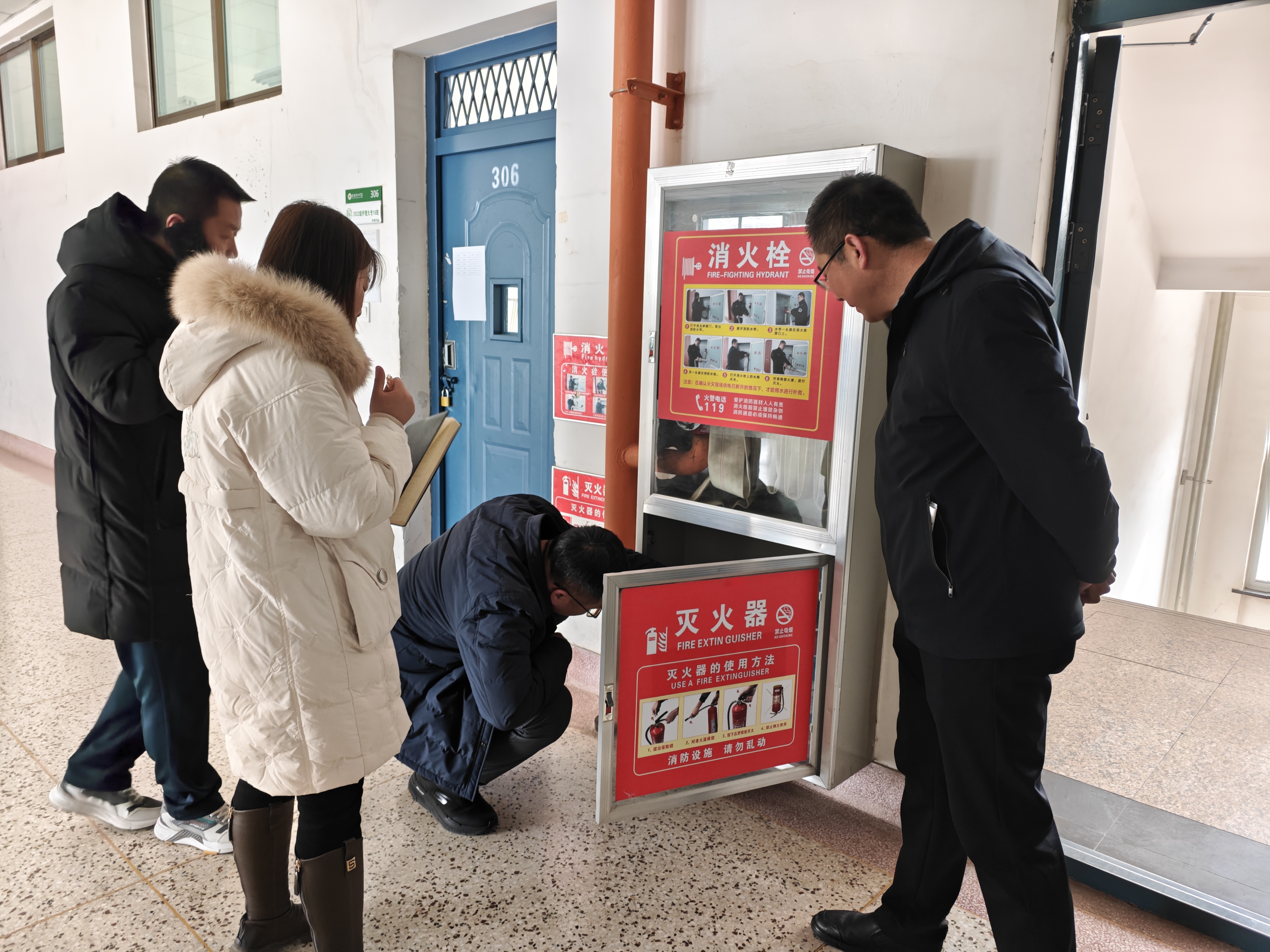 在實驗實訓室內(nèi),督察組詢問設施設備準備情況,逐一檢查實訓場地內(nèi)消防安全設施配備情況。