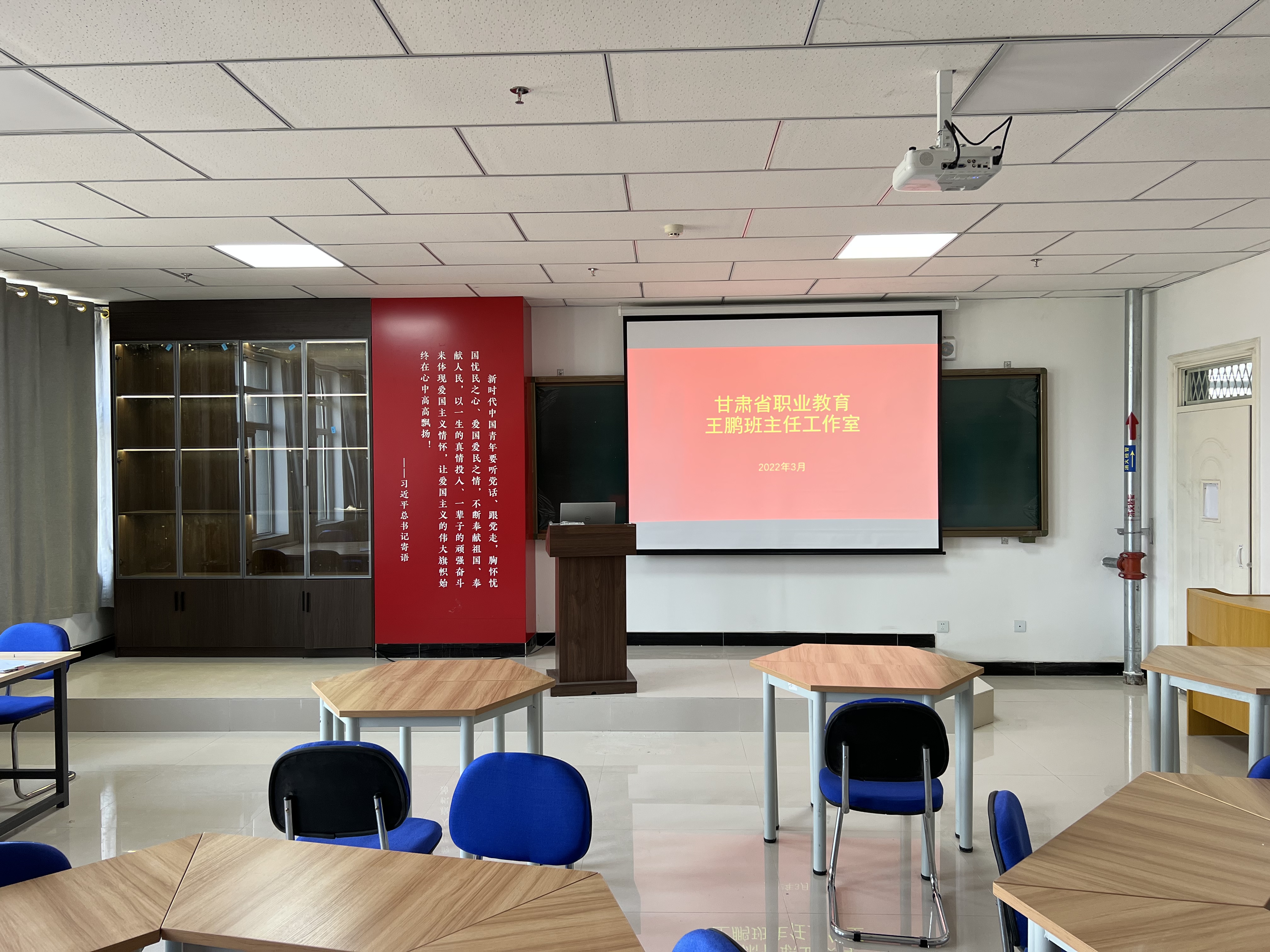 甘肅省職業(yè)教育王鵬班主任工作室于2021年7月由甘肅省教育廳批準(zhǔn)成立,建設(shè)周期四年,特聘顧問2名,骨干成員8名,試點班級2個。工作室位于能源科技樓二樓,建設(shè)面積50平方米,設(shè)置業(yè)務(wù)培訓(xùn)、主題沙龍、檔案資料、日常辦公四個區(qū)域,截至目前累計投入建設(shè)經(jīng)費2.88萬元。工作室自成立以來,堅持“楷模引領(lǐng)、名師指導(dǎo)、全面協(xié)調(diào)、骨干建設(shè)”的工作思路,以思想政治教育、班主任業(yè)務(wù)能力提升、大學(xué)生骨干班培訓(xùn)、社會實踐鍛煉、學(xué)生職業(yè)生涯規(guī)劃、參軍入伍、心理健康教育、職業(yè)素養(yǎng)提升等方面開展研究實踐,有序推進工作室各項建設(shè)工作。