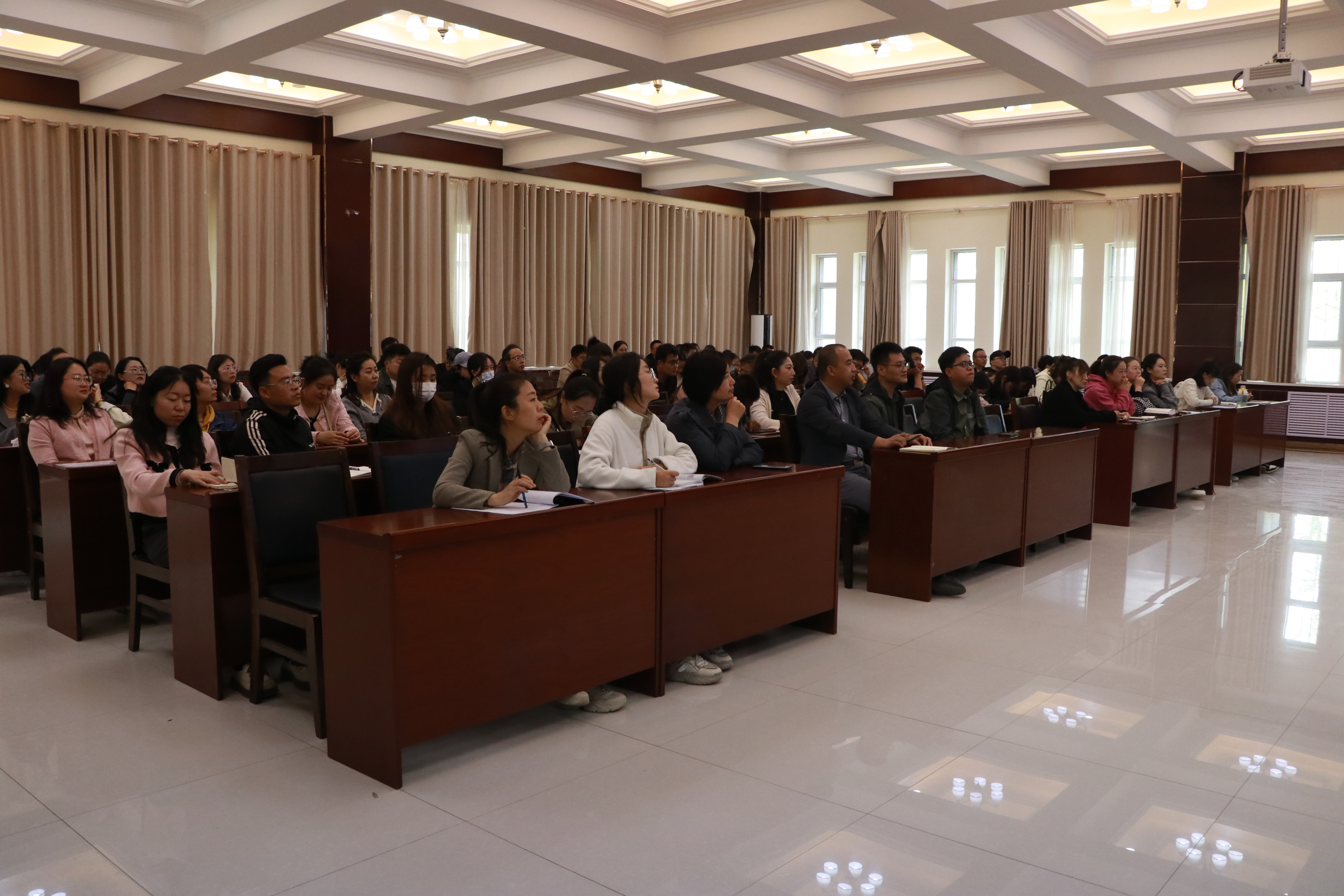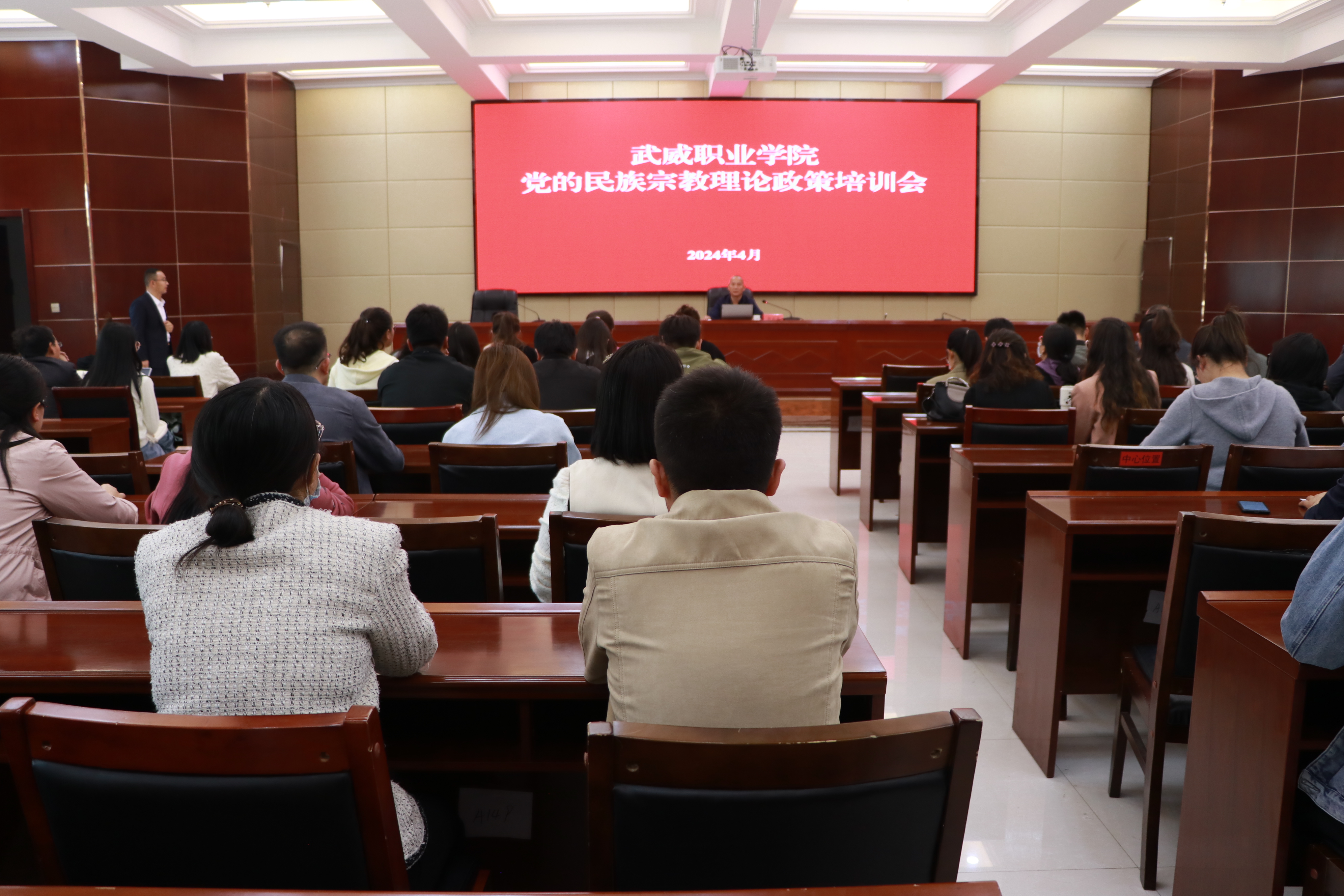 為引導(dǎo)各民族學(xué)習(xí)宣傳貫徹黨的二十大精神和習(xí)近平總書記關(guān)于加強(qiáng)和改進(jìn)民族工作的重要思想,扎實(shí)開展第21個(gè)民族團(tuán)結(jié)進(jìn)步宣傳月活動(dòng),推動(dòng)全校師生全力做好鑄牢中華民族共同體意識(shí)宣傳教育、加強(qiáng)民族團(tuán)結(jié)進(jìn)步創(chuàng)建,4月26日下午,學(xué)校在行樹樓北側(cè)報(bào)告廳舉行黨的民族宗教理論政策培訓(xùn)會(huì)。宣傳統(tǒng)戰(zhàn)部全體人員、馬克思主義學(xué)院選派的部分思政課教師、各二級(jí)學(xué)院輔導(dǎo)員、班主任代表等100余人參加培訓(xùn)會(huì)。