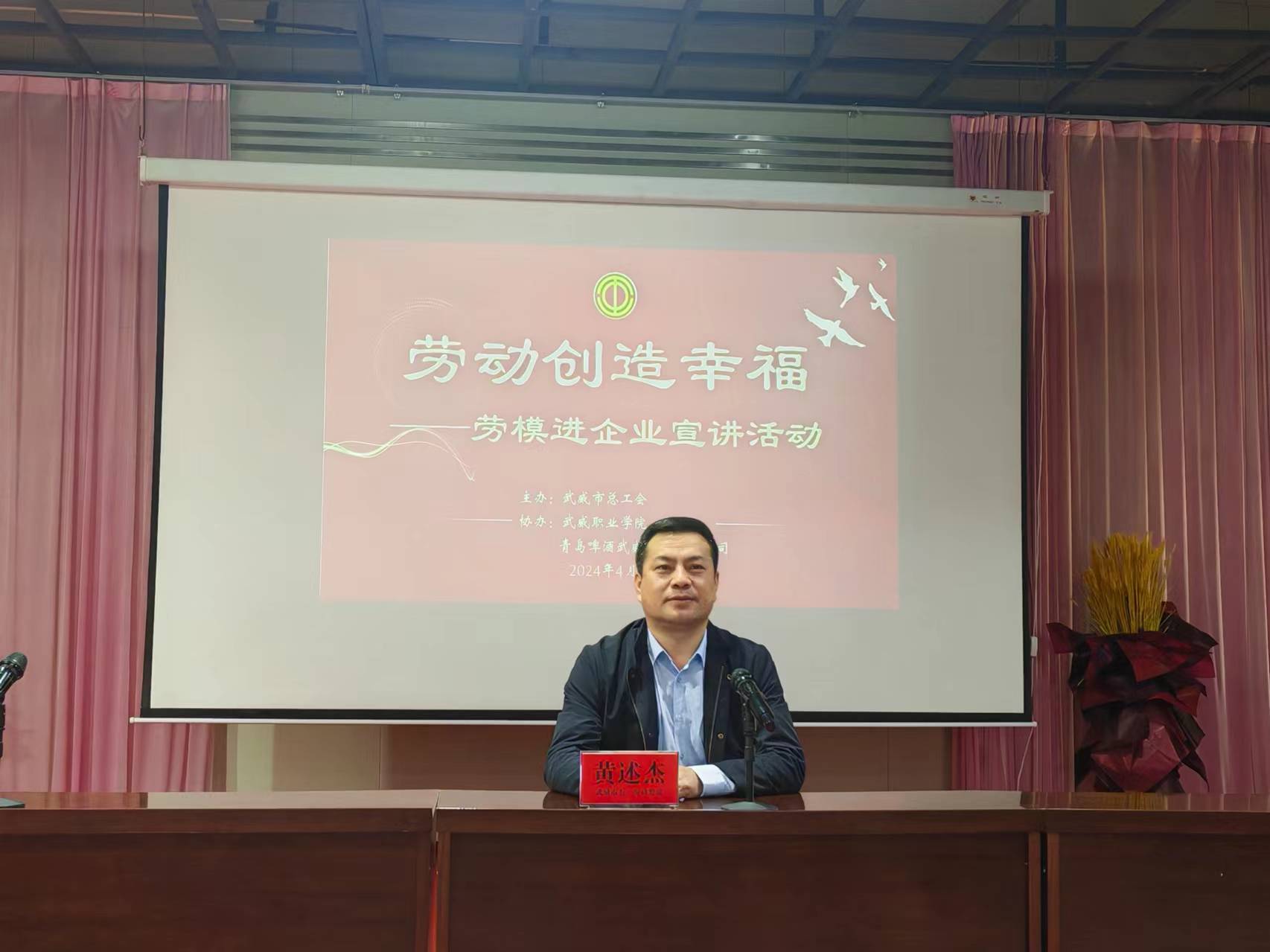 活動邀請武威市五一勞動獎?wù)芦@得者、中科低碳新能源技術(shù)學(xué)院院長黃述杰為現(xiàn)場職工作了一場生動的宣講,他以“勞動創(chuàng)造幸?!睘橹黝},結(jié)合自身奮斗經(jīng)歷,運用通俗易懂的語言,圍繞勞模工匠精神的基本內(nèi)涵、基本要求等方面,為大家進(jìn)行深入淺出地闡述和講解。他的宣講深深感染了在場的每一個人,大家紛紛表示,要以身邊的勞模工匠為榜樣,立足本職崗位,做好本職工作,為推進(jìn)武威高質(zhì)量發(fā)展貢獻(xiàn)自己的力量。