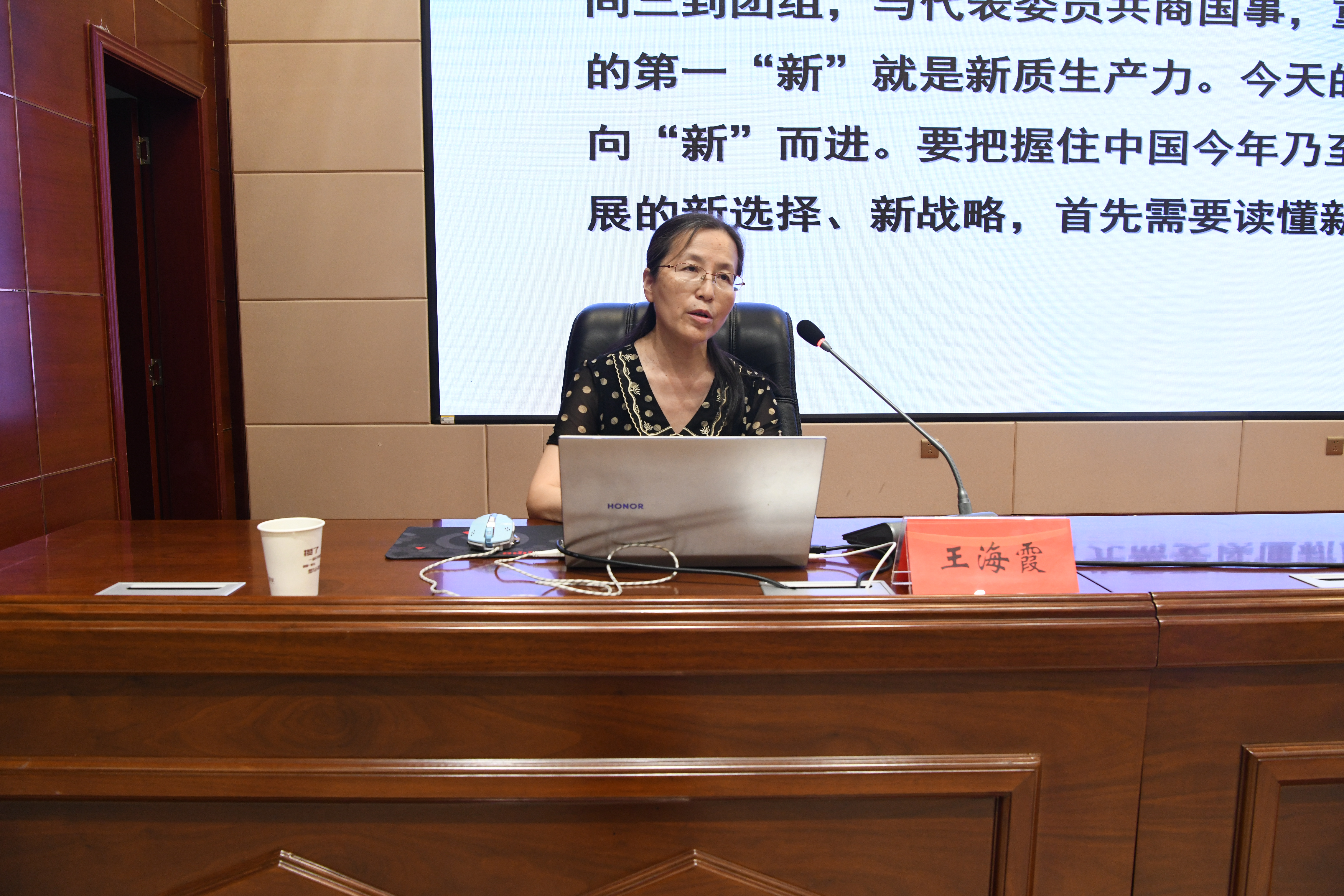 王海霞教授以《新質(zhì)生產(chǎn)力的內(nèi)涵要義、發(fā)展要求和發(fā)展重點(diǎn)》為題,通過多個(gè)鮮活的案例深入闡釋了新質(zhì)生產(chǎn)力的理論內(nèi)涵及核心要義,緊扣社會熱點(diǎn),將理論轉(zhuǎn)化為知識點(diǎn),為我們帶來很多啟發(fā)。