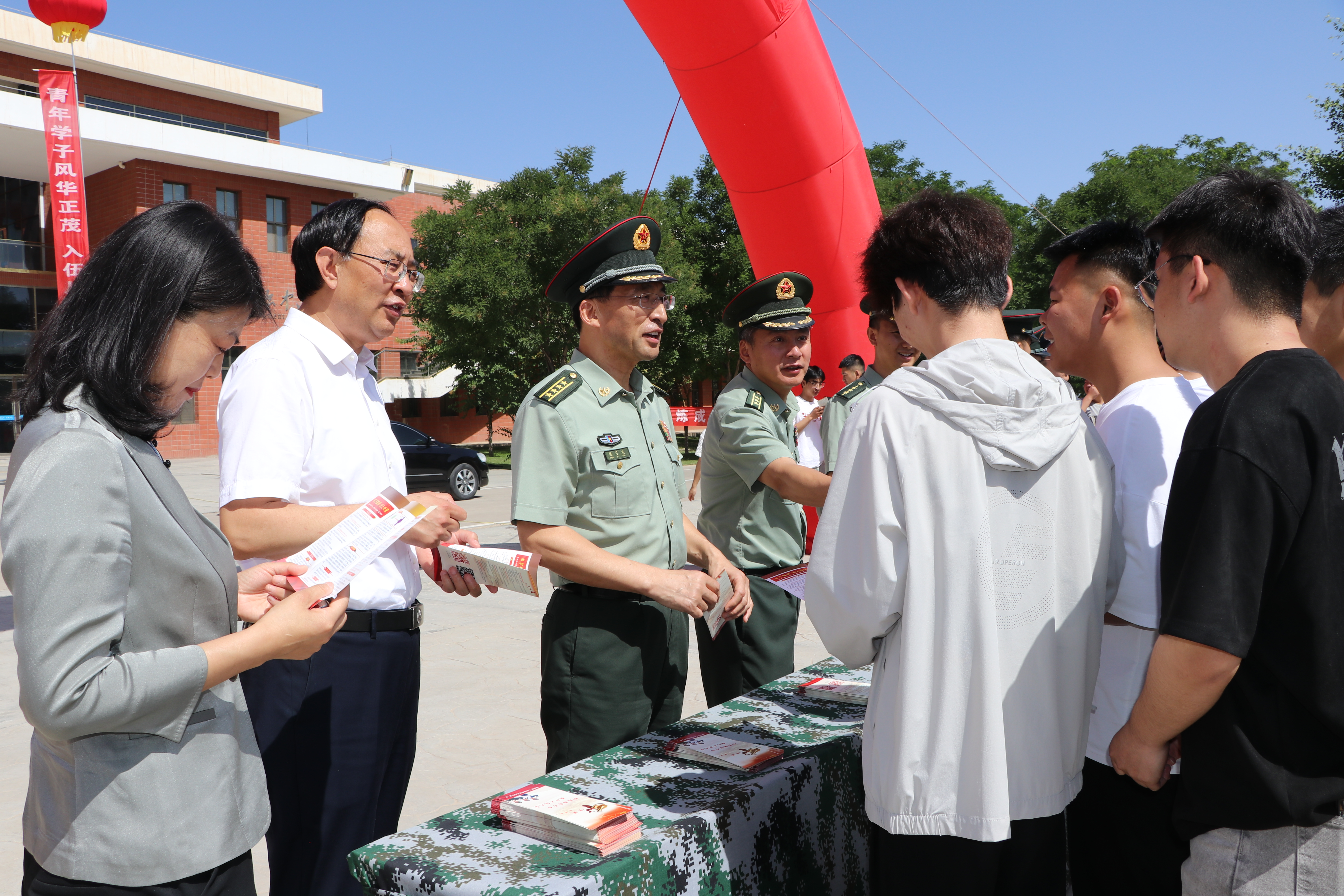 6月14日上午,武威市2024年下半年征兵工作啟動(dòng)儀式暨征兵宣傳進(jìn)校園活動(dòng)在學(xué)校舉行。武威軍分區(qū)大校司令員陳習(xí)友,涼州區(qū)人武部上校部長金鑫,武威市教育局副局長馬曉麗,學(xué)校黨委書記王宏出席啟動(dòng)儀式。儀式由學(xué)校黨委委員、副校長王守云主持。
