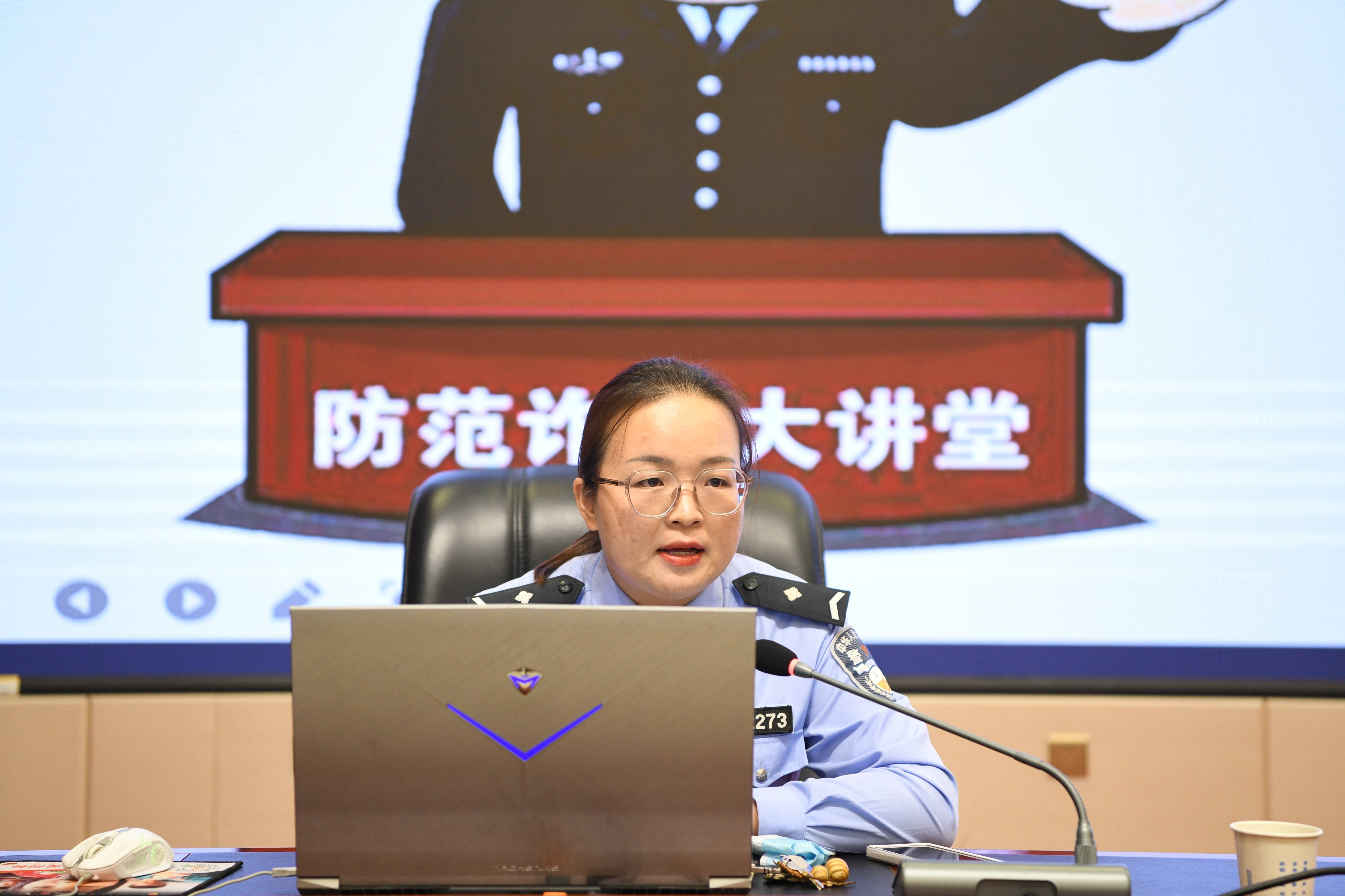 西關(guān)派出所民警阮慧萍同志重點講解了金融詐騙的特點和防范措施、如何安全使用手機(jī)銀行等金融知識,提醒同學(xué)們要保管好自己的銀行卡和個人信息,多了解防范電信網(wǎng)絡(luò)詐騙方面的知識,加強(qiáng)自身安全和防詐騙意識。