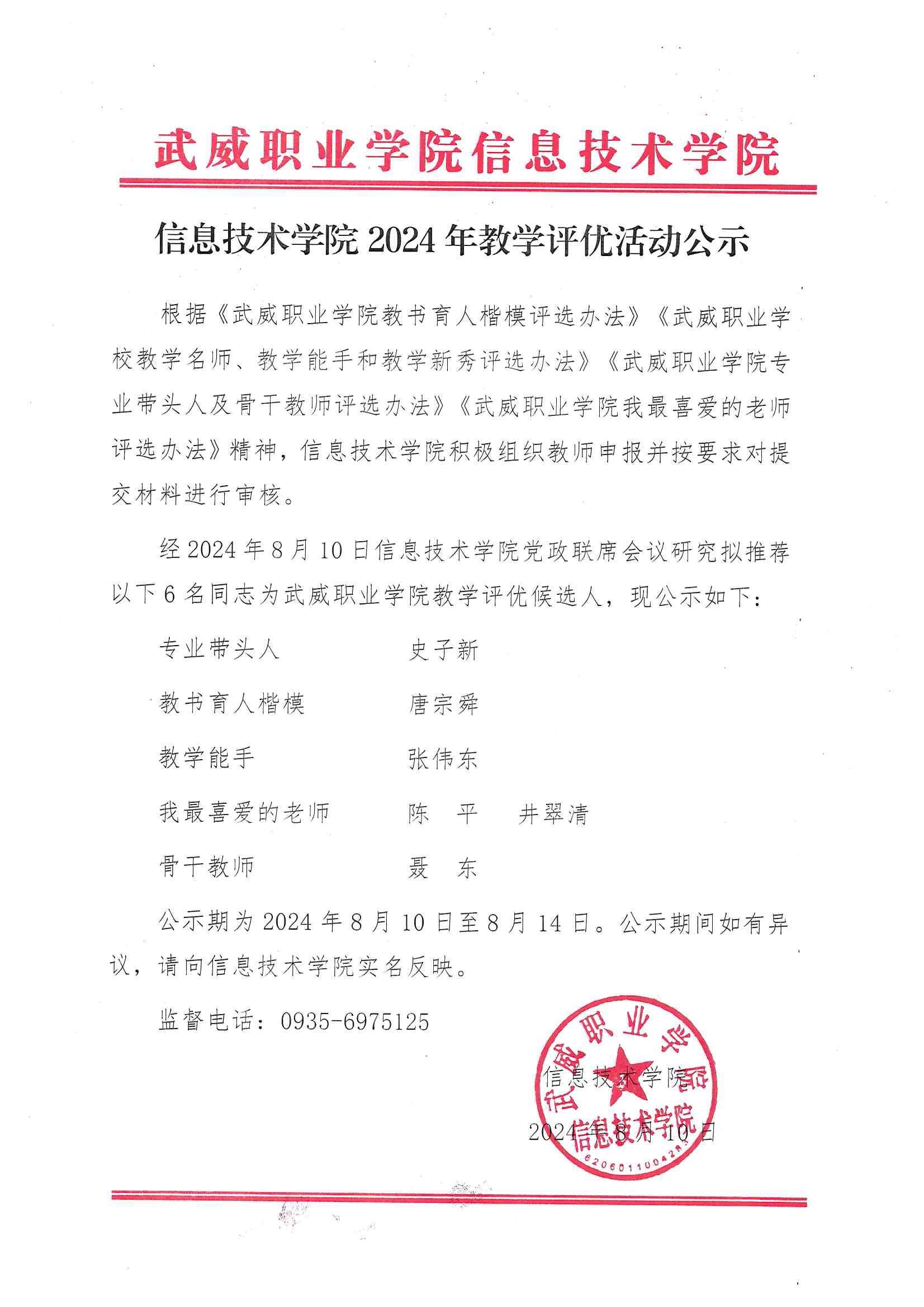 信息技術(shù)學(xué)院關(guān)于2024年教學(xué)評優(yōu)活動公示