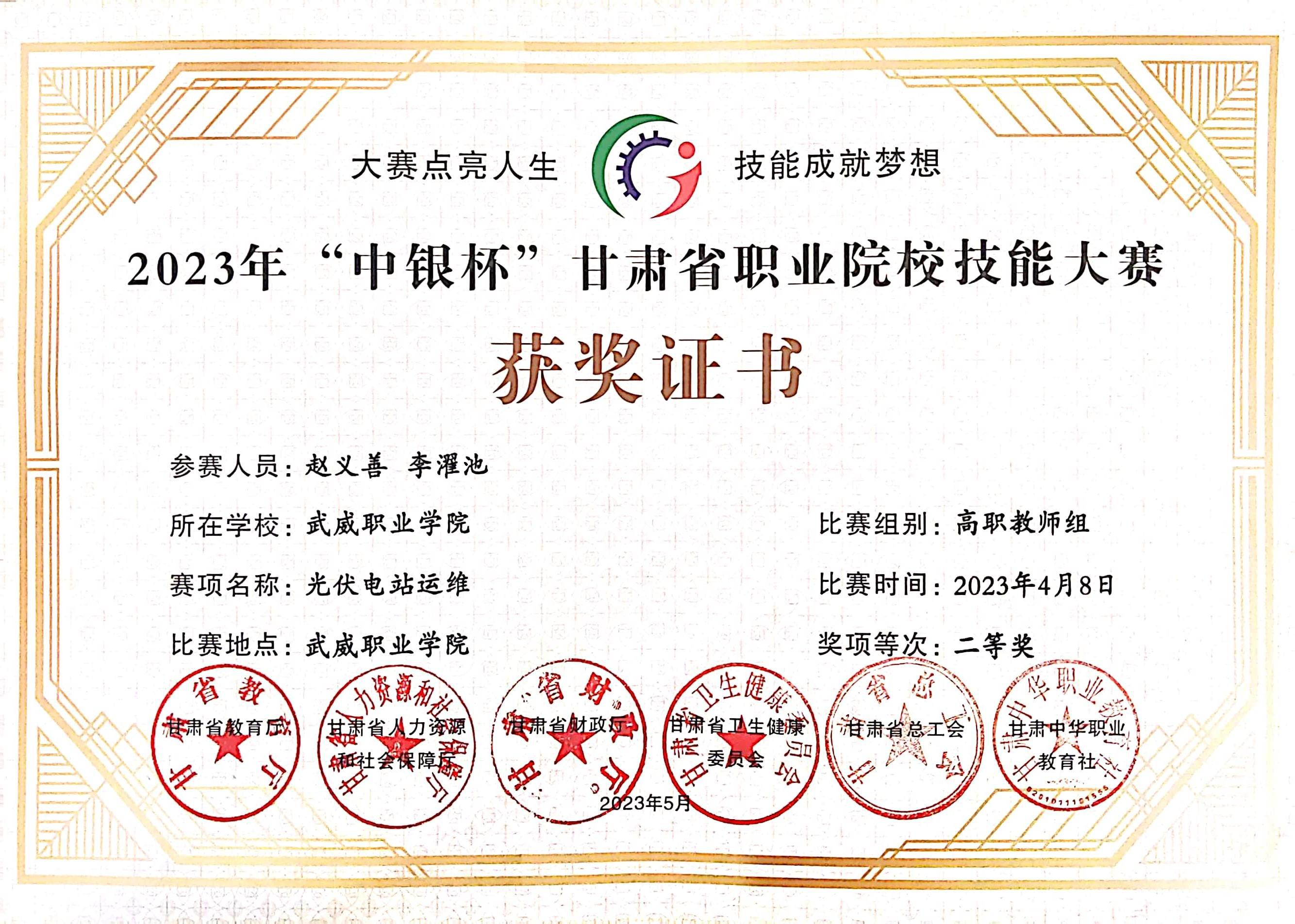 【技能大賽】2023年-甘肅省職業(yè)院校技能大賽(高職教師組)“光伏電站運(yùn)維”賽項(xiàng)省級(jí)二等獎(jiǎng)