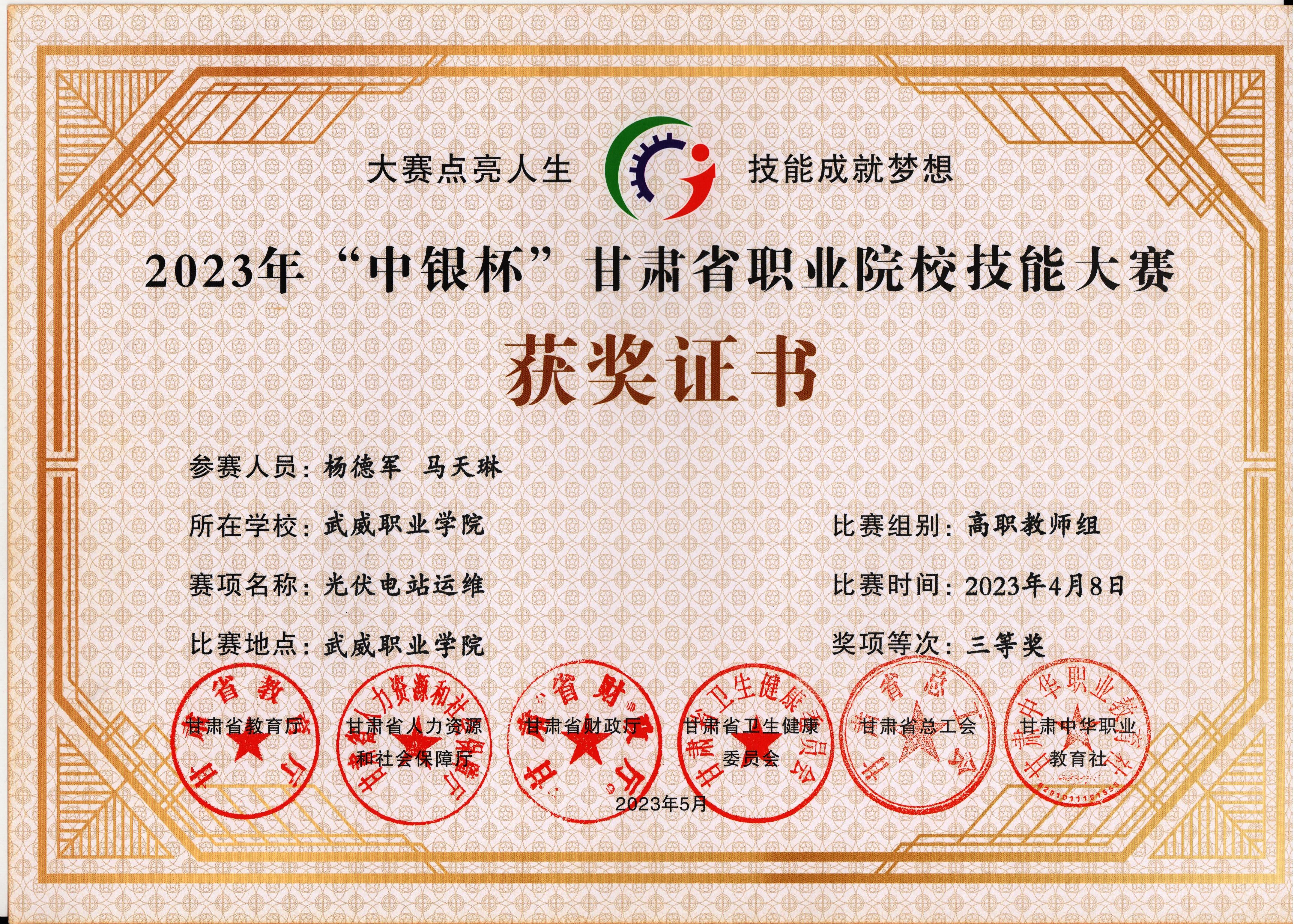 【技能大賽】2023年-甘肅省職業(yè)院校技能大賽光伏電站運(yùn)維賽項(xiàng)三等獎(jiǎng)