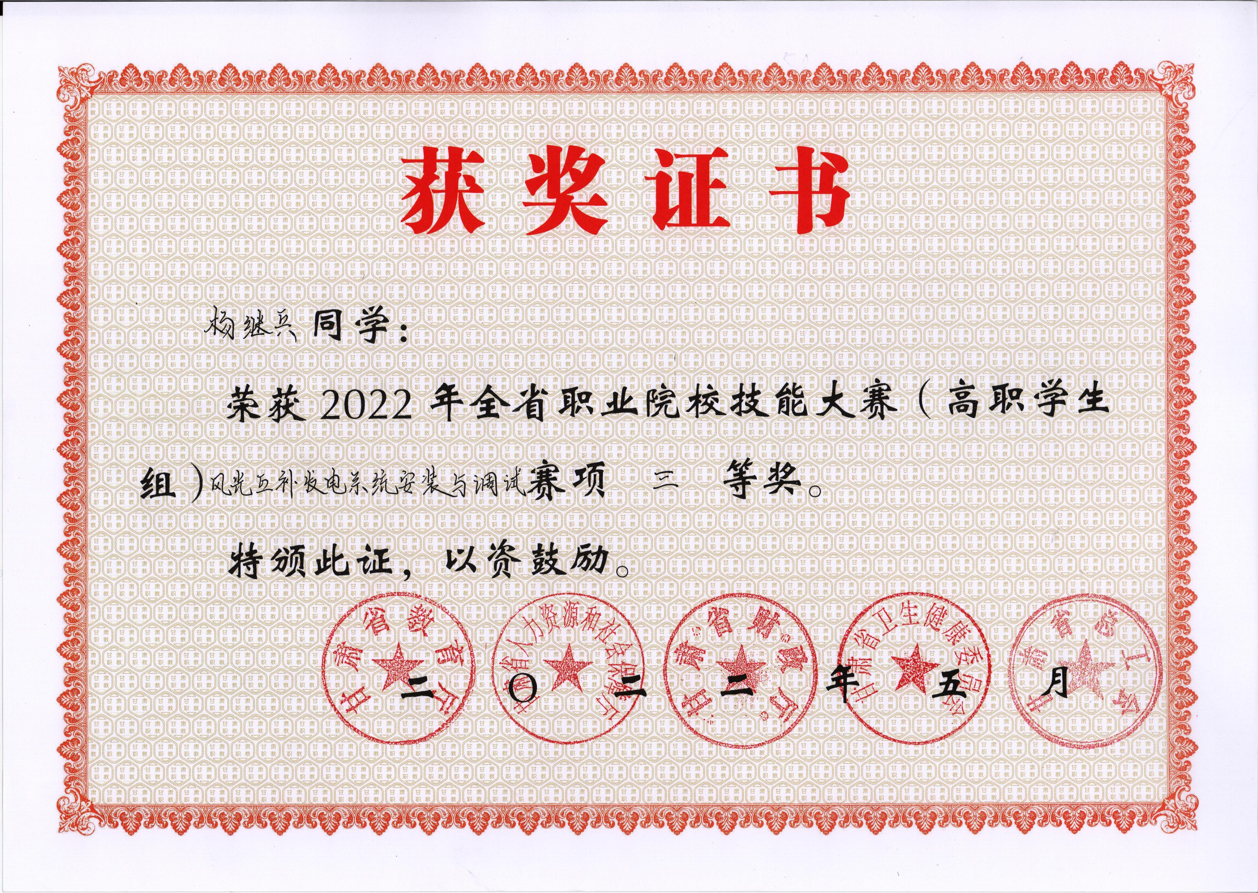 【技能大賽】2022年-甘肅省職業(yè)院校技能大賽風光互補發(fā)電系統(tǒng)安裝與調(diào)試賽項三等獎3項