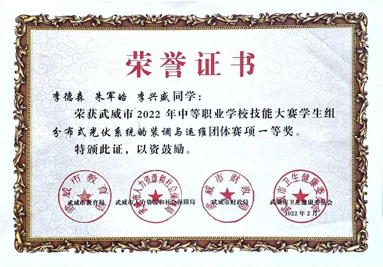 【技能大賽】2022年-武威市中等學(xué)校職業(yè)技能大賽分布式光伏系統(tǒng)的裝調(diào)與運(yùn)維賽項(xiàng)一等獎(jiǎng)