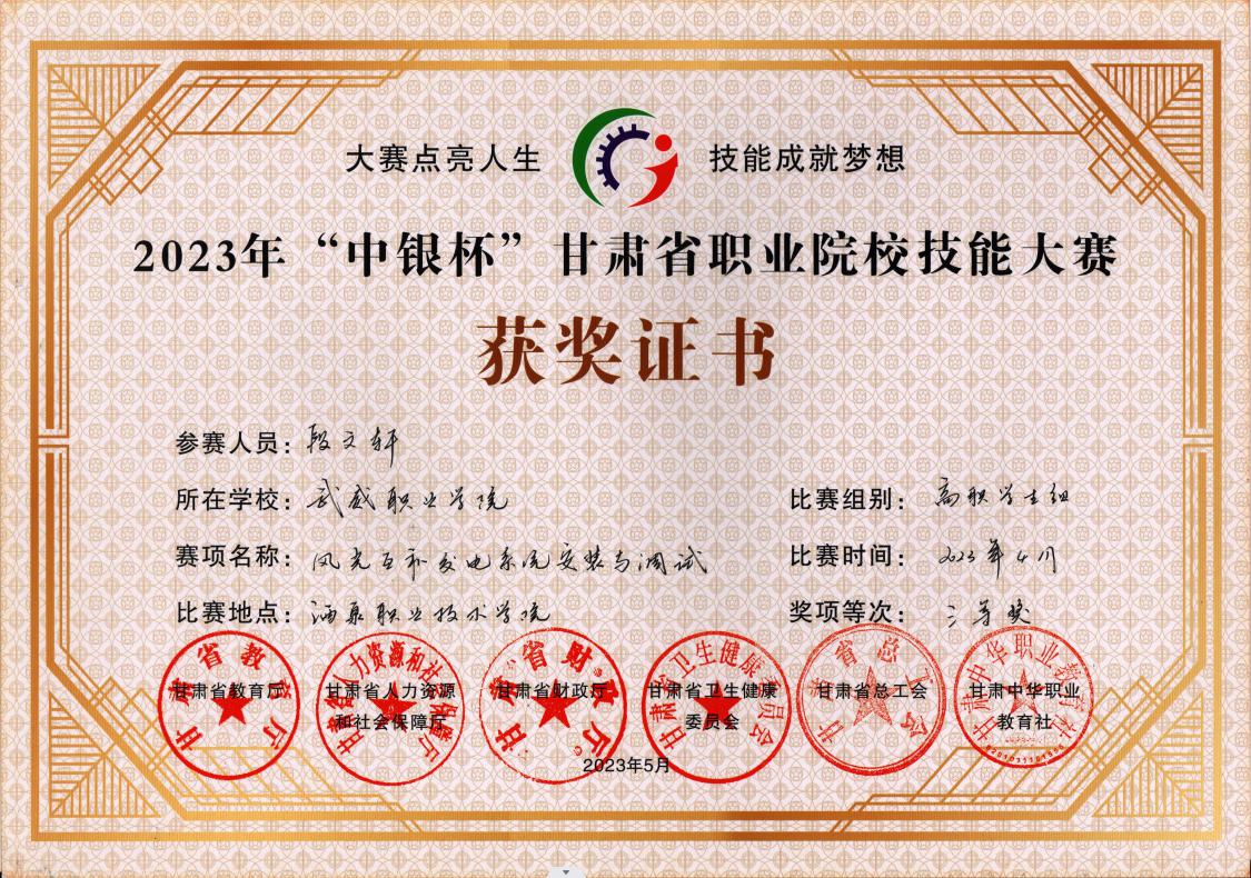 【技能大賽】2023年-甘肅省職業(yè)院校技能大賽風(fēng)光互補(bǔ)發(fā)電系統(tǒng)安裝與調(diào)試賽項(xiàng)三等獎(jiǎng)