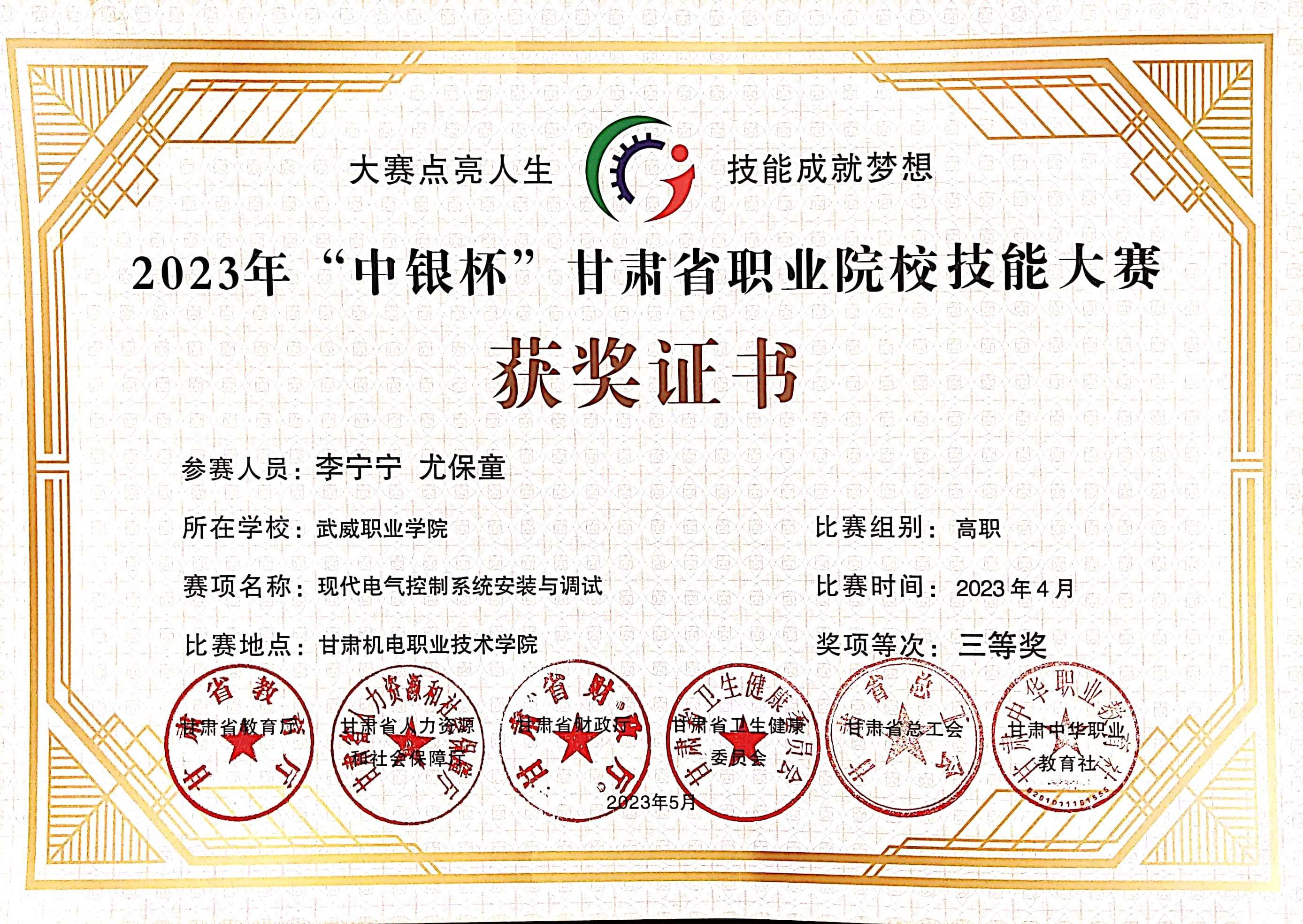 【技能大賽】2023年-甘肅省職業(yè)院校學(xué)生技能大賽“現(xiàn)代電氣控制系統(tǒng)安裝與調(diào)試”賽項(xiàng)省級(jí)三等獎(jiǎng)