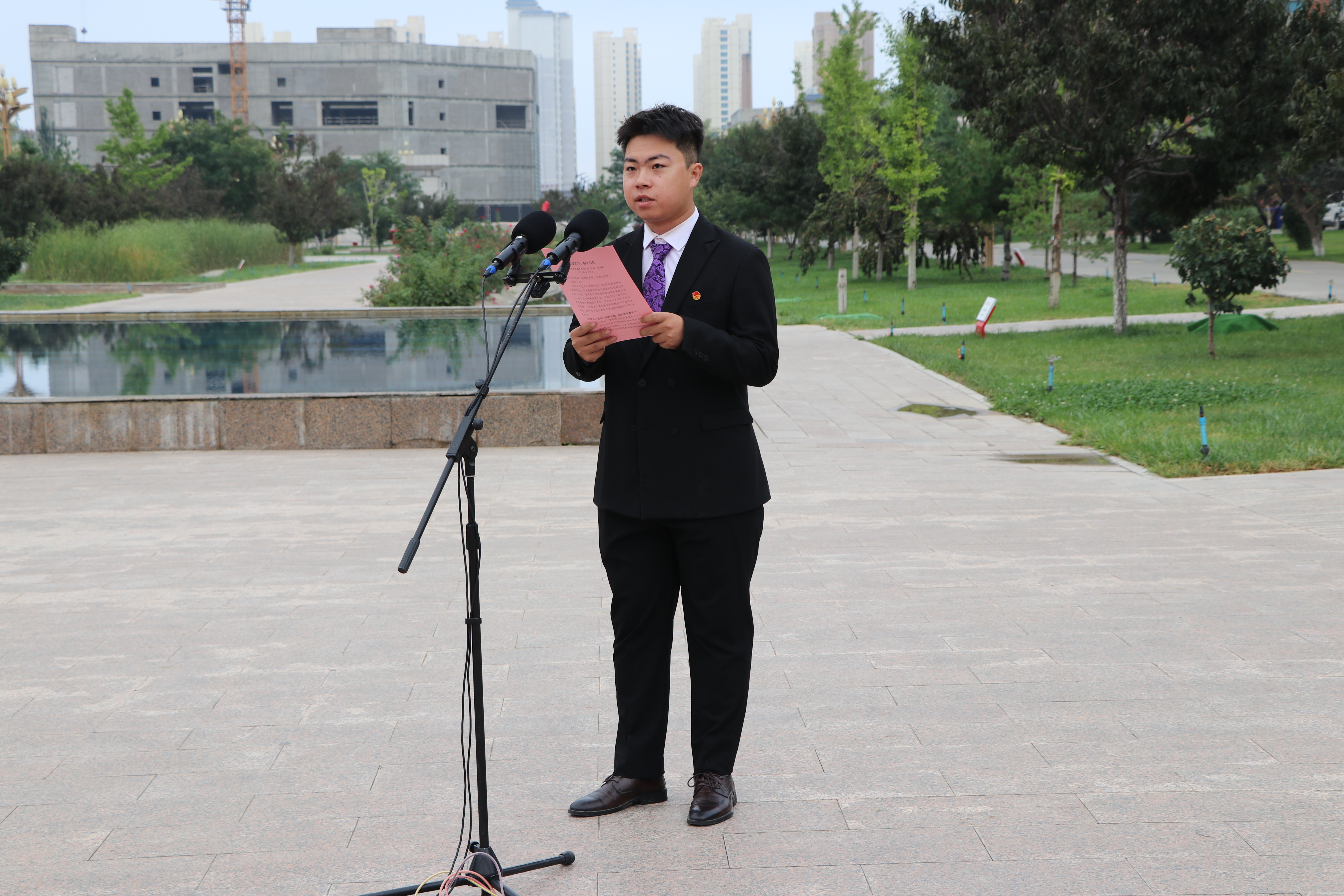 9月2日上午,學(xué)校在圖書館東側(cè)國旗廣場舉行新學(xué)期升國旗儀式,黨委書記王宏向全體師生講授“開學(xué)第一課”。學(xué)校領(lǐng)導(dǎo)班子成員、全體中層干部,2024年新入職教師、退伍大學(xué)生士兵代表和各二級學(xué)院師生代表共480余人參加活動,黨委副書記、校長張開禮主持活動。