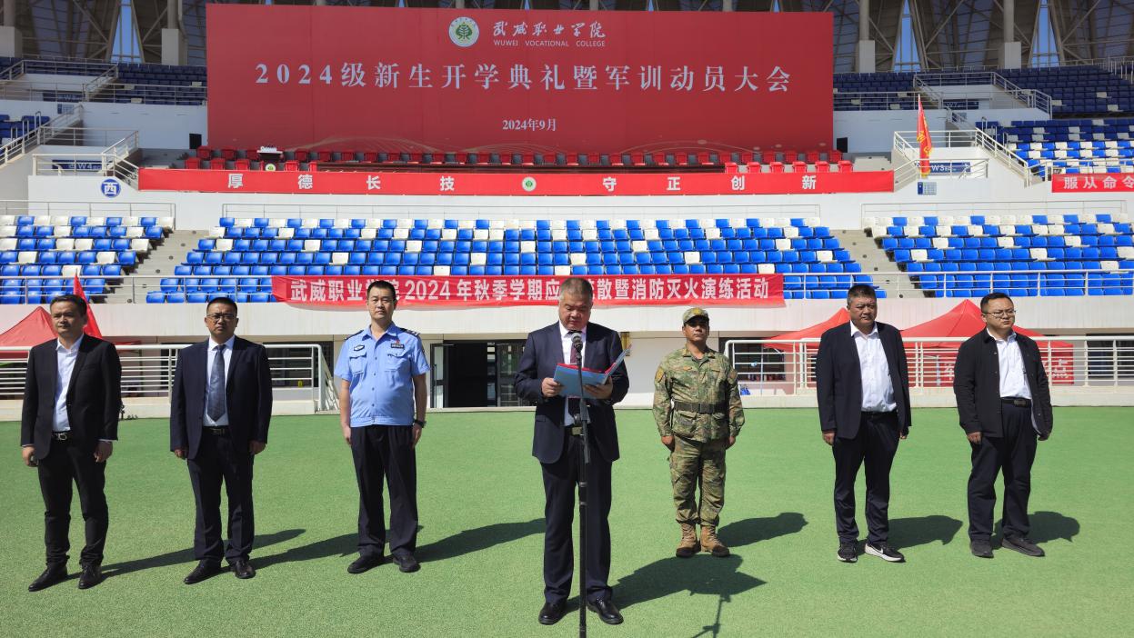 9月7日上午,學(xué)校舉辦2024年秋季學(xué)期應(yīng)急疏散暨消防滅火演練活動。學(xué)校黨委委員、副校長王守云,軍訓(xùn)總教官謝紹璞中校,涼州區(qū)西關(guān)派出所副所長藺福鵬,演練小組領(lǐng)導(dǎo),新進(jìn)教師,新進(jìn)食堂員工,全體新生等共3200余人參加活動?;顒佑赏跏卦浦鞒?。
