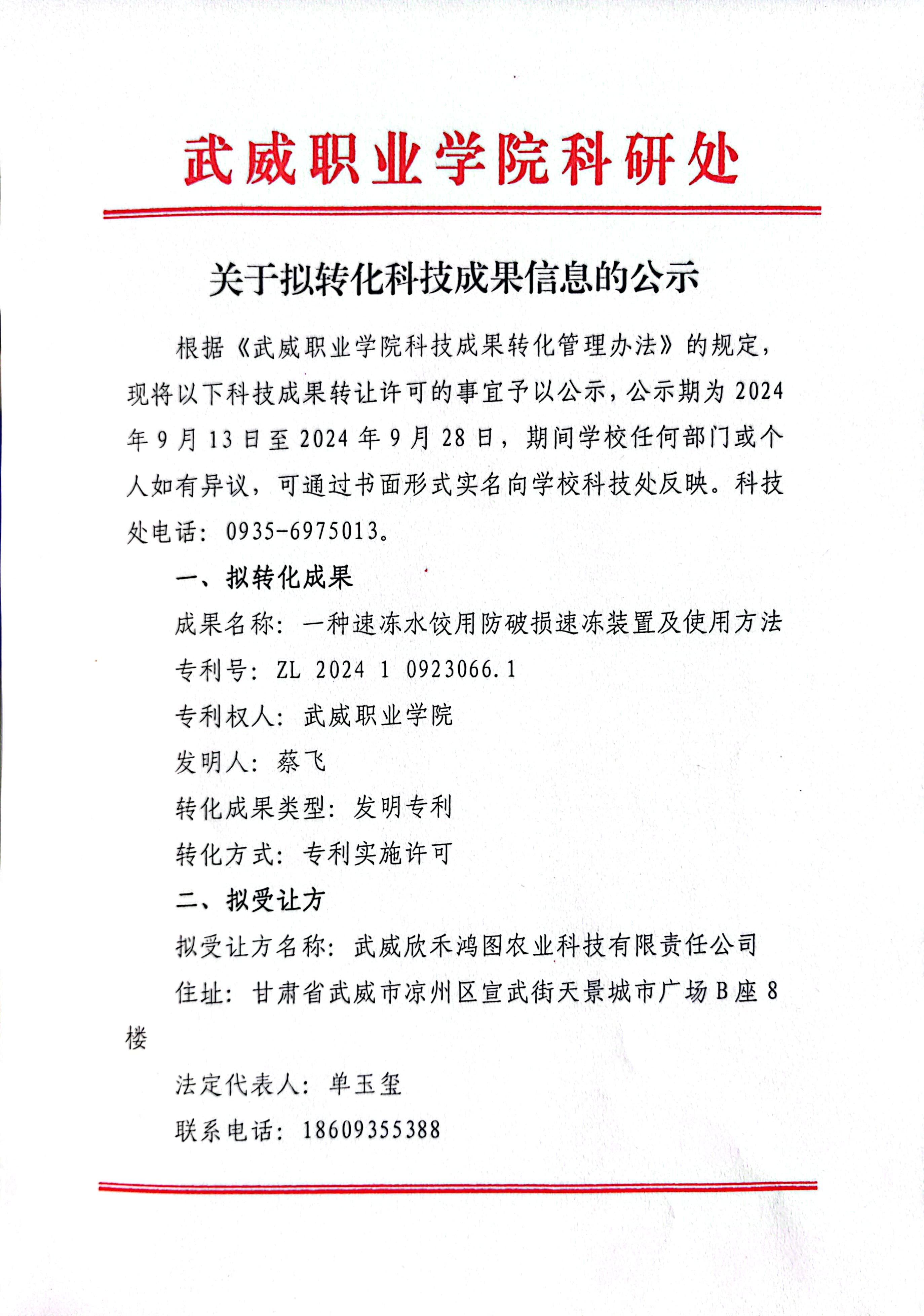 關于擬轉化科技成果信息的公示