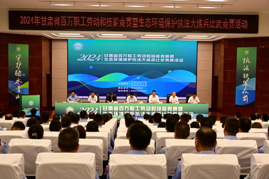 9月3日上午,由甘肅省生態(tài)環(huán)境廳、甘肅省總工會、甘肅省婦女聯(lián)合會主辦,武威市生態(tài)環(huán)境局協(xié)辦的甘肅省生態(tài)環(huán)境保護(hù)執(zhí)法大練兵比武競賽活動(dòng)在學(xué)校菁英廳開幕,甘肅省生態(tài)環(huán)境廳副廳長劉文璽、省司法廳副廳長何雯、省婦聯(lián)一級巡視員崔海華、武威市人民政府副市長陳一夫、市生態(tài)局局長張有恒、學(xué)校黨委書記王宏、校長、黨委副書記張開禮,省生態(tài)環(huán)境廳、省總工會、省婦聯(lián)、省司法廳、武威市人民政府有關(guān)領(lǐng)導(dǎo),省生態(tài)環(huán)境廳機(jī)關(guān)處室、直屬單位相關(guān)負(fù)責(zé)同志,武威市生態(tài)環(huán)境局、學(xué)校考試培訓(xùn)中心等單位負(fù)責(zé)同志共100余人參加了開幕式。