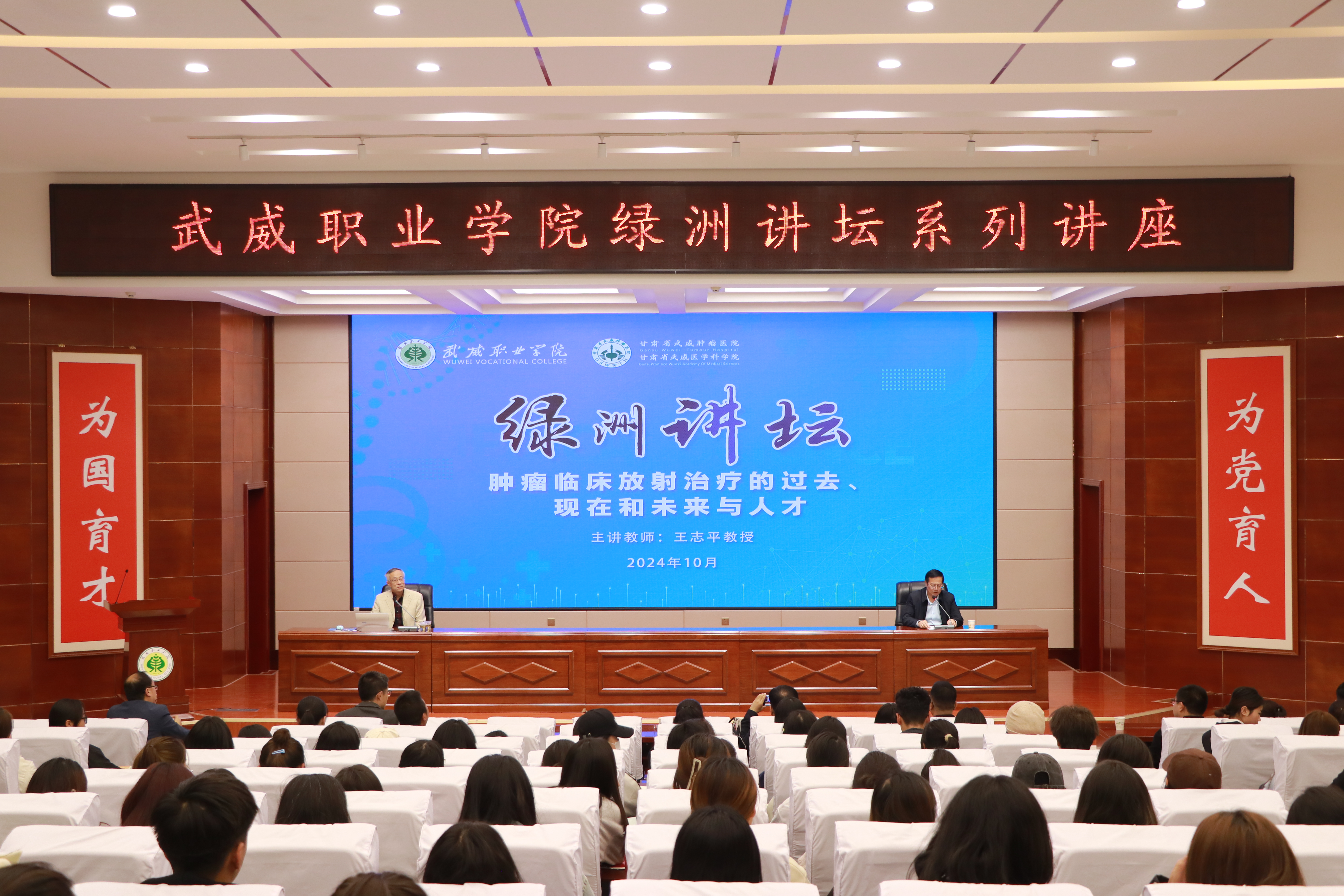 報告會由學(xué)校校長、黨委副書記張開禮主持,特邀蘭州大學(xué)第二醫(yī)院王志平教授作了“腫瘤臨床放射治療的過去、現(xiàn)在和未來與人才”的主題講座,甘肅省武威醫(yī)學(xué)科學(xué)院腫瘤醫(yī)院醫(yī)護(hù)人員代表、蘭州大學(xué)實(shí)習(xí)生代表和學(xué)校師生代表共計220余人參加了報告會。