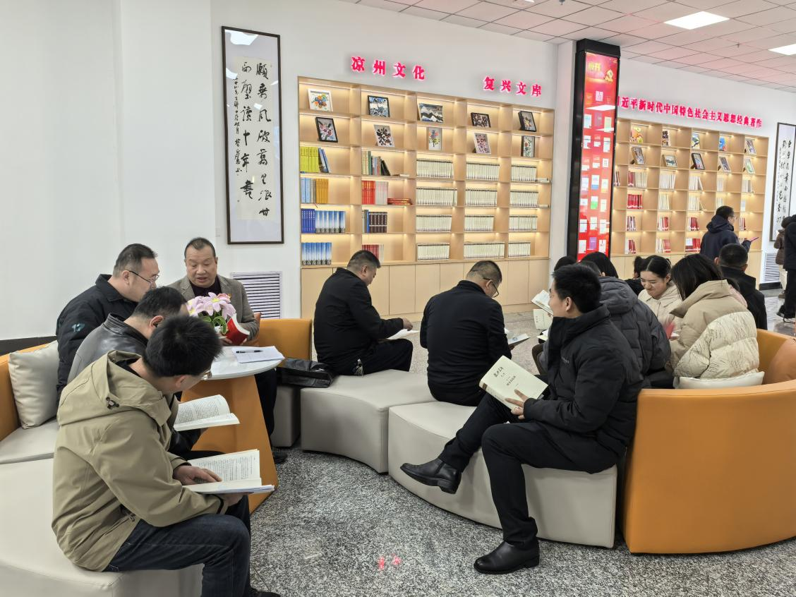 黨員們圍坐在書架旁,認(rèn)真閱讀關(guān)于習(xí)近平新時代中國特色社會主義思想書籍。書籍涵蓋了黨的創(chuàng)新理論、實(shí)踐探索、歷史經(jīng)驗等多方面內(nèi)容。閱讀結(jié)束后,全體黨員在研討交流室集中觀看了視頻《中國共產(chǎn)黨人精神譜系》,并開展了研討。