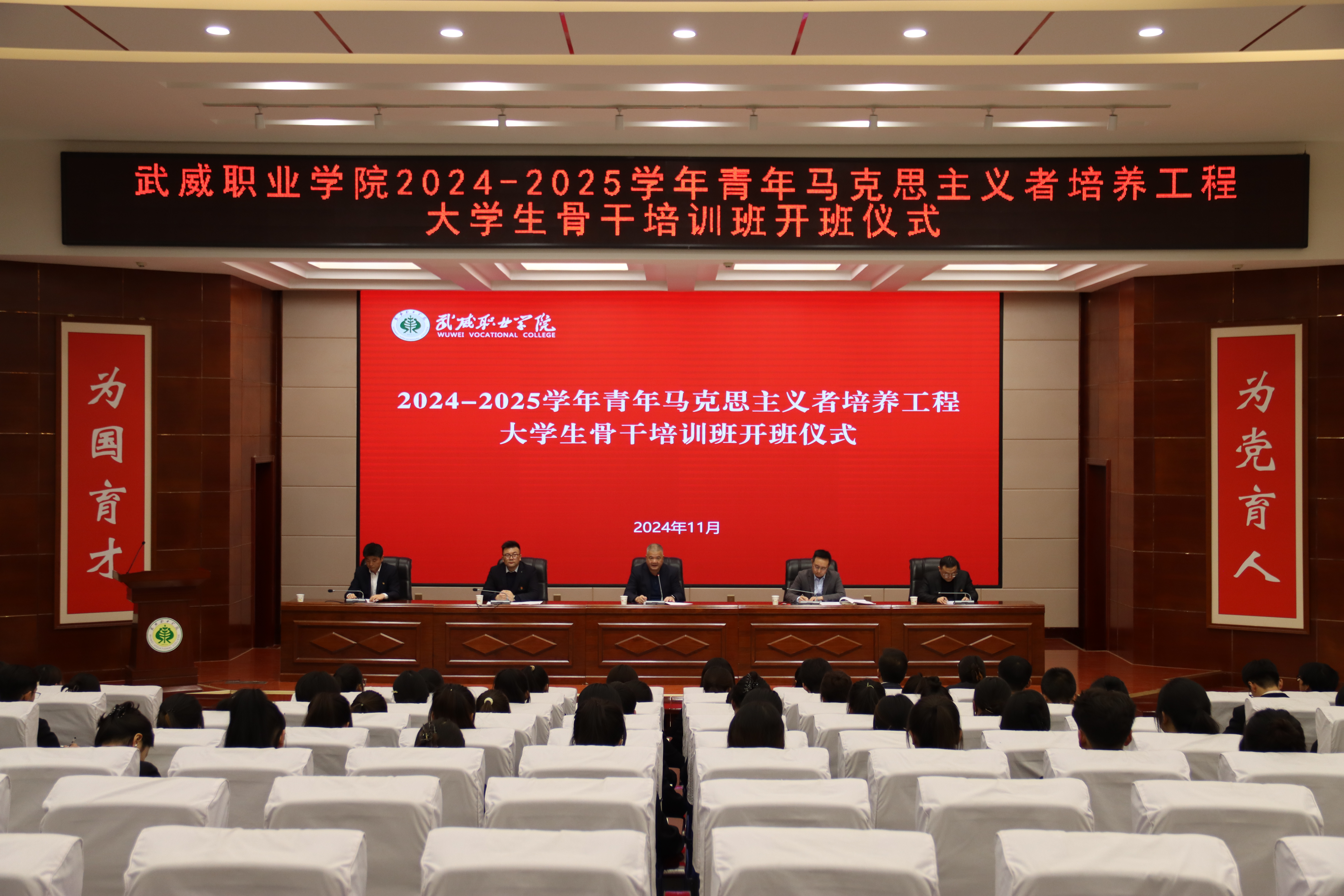 11月28日下午,學(xué)校青年馬克思主義者培養(yǎng)工程2024-2025學(xué)年大學(xué)生骨干培訓(xùn)班在菁英廳舉行開(kāi)班儀式。學(xué)校黨委委員、副校長(zhǎng)王守云出席開(kāi)班儀式并講話(huà),黨委委員、組織人事處處長(zhǎng)任陶出席活動(dòng)。儀式由校團(tuán)委書(shū)記高鵬堂主持。