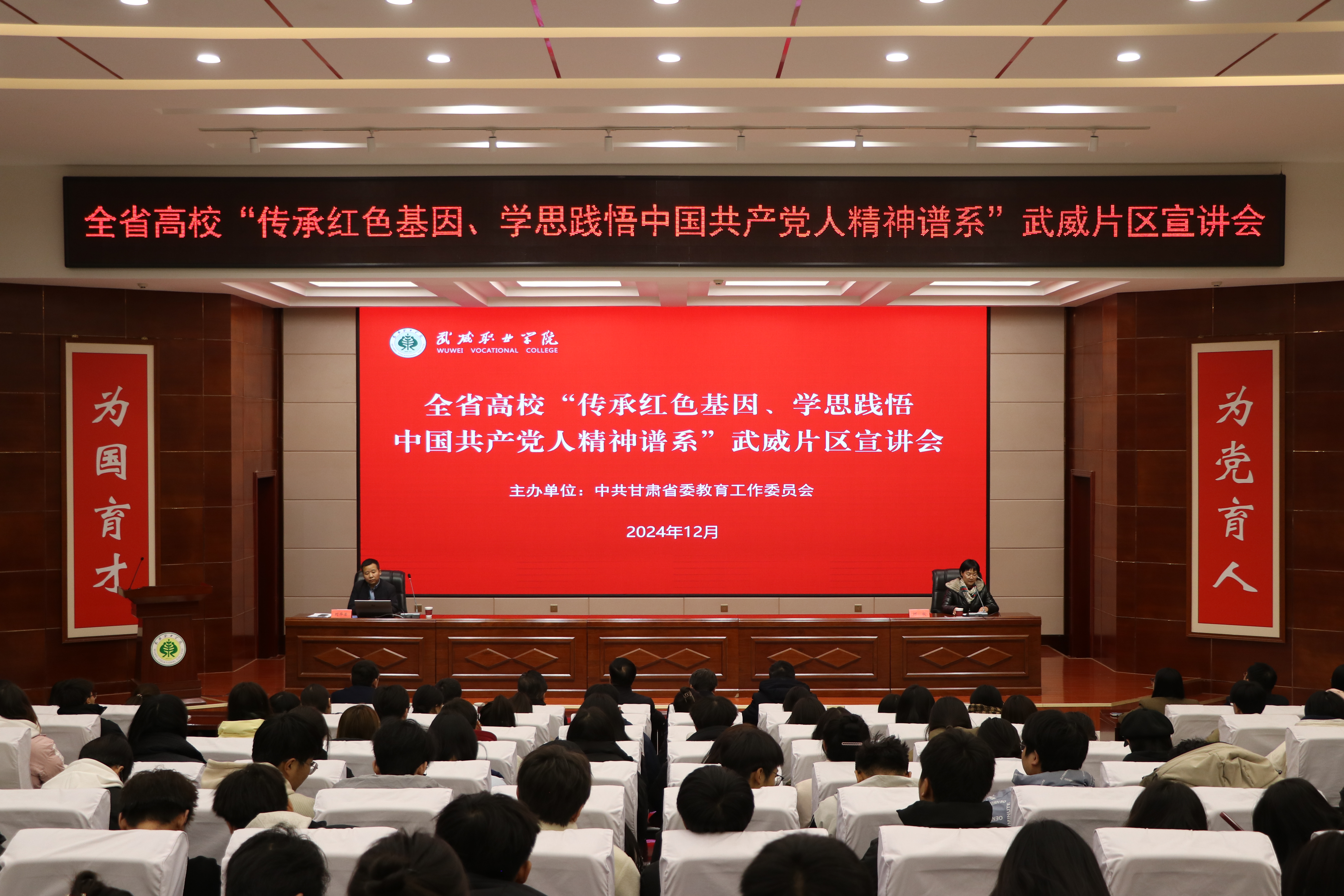 12月12日,由省委教育工委主辦,我校牽頭承辦的全省高?!皞鞒屑t色基因、學(xué)思踐悟中國(guó)共產(chǎn)黨人精神譜系”武威片區(qū)宣講會(huì)順利舉行。張掖市忠孝文化研習(xí)會(huì)會(huì)長(zhǎng)魏亞勇、蘭州交通大學(xué)馬克思主義學(xué)院副院長(zhǎng)劉華榮結(jié)合個(gè)人經(jīng)歷,聚焦紅色文化、鐵人精神等開(kāi)展示范宣講。甘肅畜牧工程職業(yè)技術(shù)學(xué)院和我校師生代表共計(jì)200人聆聽(tīng)了宣講。宣講會(huì)由黨委委員、副校長(zhǎng)何毅主持。