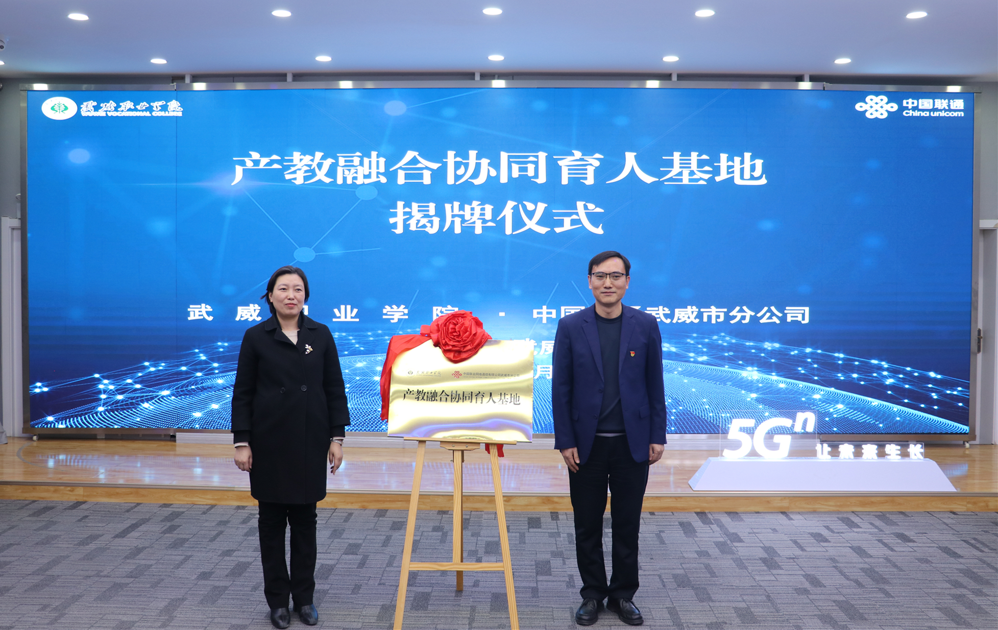 12月19日,學(xué)校與中國聯(lián)通武威市分公司校企戰(zhàn)略合作協(xié)議簽約儀式在聯(lián)通數(shù)字經(jīng)濟創(chuàng)新展示中心舉行。武威市教育局局長王娟、中國聯(lián)通武威市分公司總經(jīng)理許勇、學(xué)校黨委書記王宏、校長李海軍出席簽約儀式。學(xué)校黨委委員、副校長何毅主持儀式。