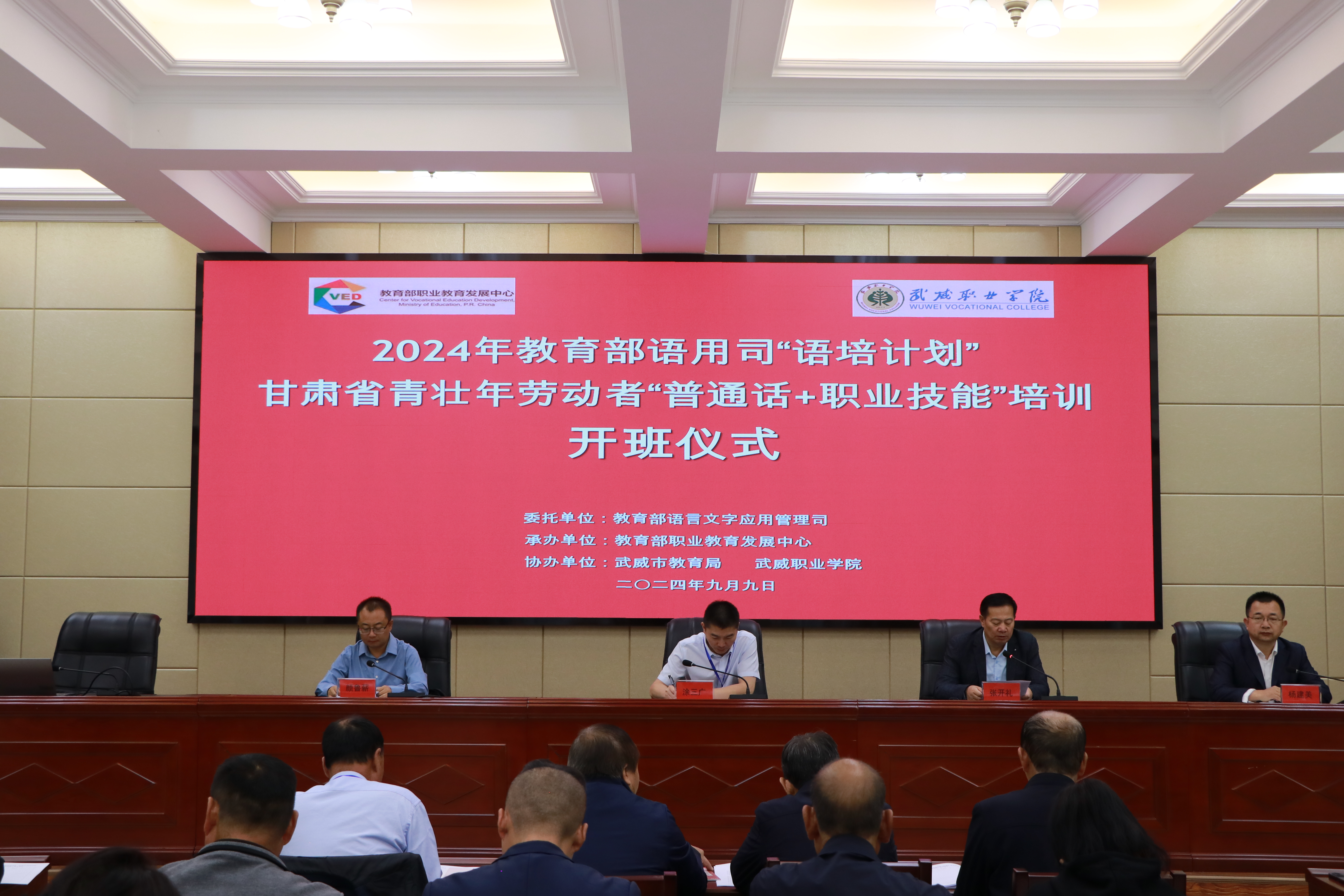 9月9日上午,2024年教育部語用司“語培計劃”甘肅省青壯年勞動者“普通話+職業(yè)技能”培訓班在我校正式開班。本次培訓是深入貫徹黨的二十大精神和二十屆三中全會精神,根據(jù)教育部語用司《關于實施2024年國家通用語言文字示范性培訓計劃的通知》,受教育部語用司委托,由教育部職業(yè)教育發(fā)展中心承辦、武威市教育局、學校共同協(xié)辦。本次培訓為期5天,共有來自武威市三縣一區(qū)的50余名學員參加。培訓以“語言鋪路,技能致富”為主題,培訓內容聚焦當?shù)剞r業(yè)種植技術技能和畜牧業(yè)養(yǎng)殖技能開展,以古浪“紅禿頭”小麥、民勤蜜瓜等特色農產品的栽培養(yǎng)殖技術為主線,設計了“普通話+職業(yè)技能”為主題的課程內容,邀請了國家級普通話測試員、甘肅省農業(yè)科學院專家、武威市農科所專家等組成的專家團隊。