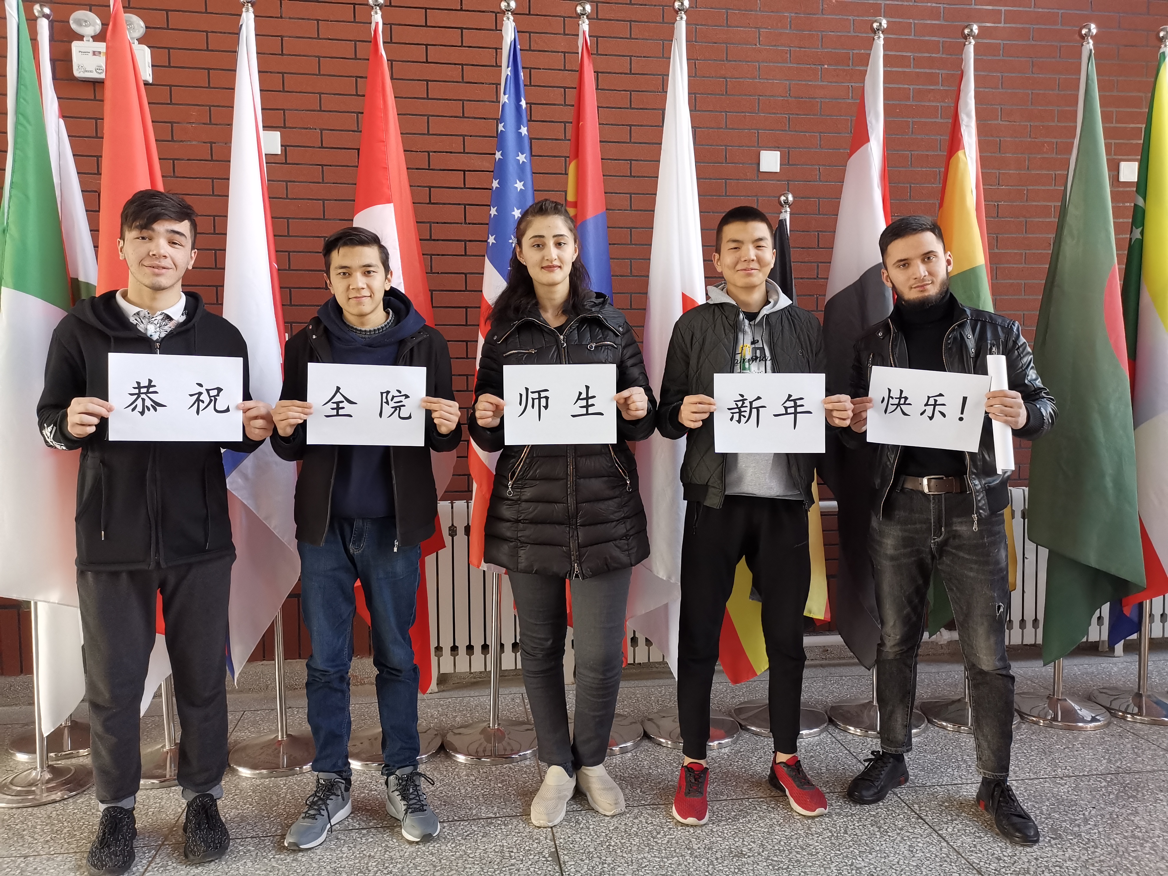 -- Foreign students wished teachers and students of Wuwei Vocational College a happy new year