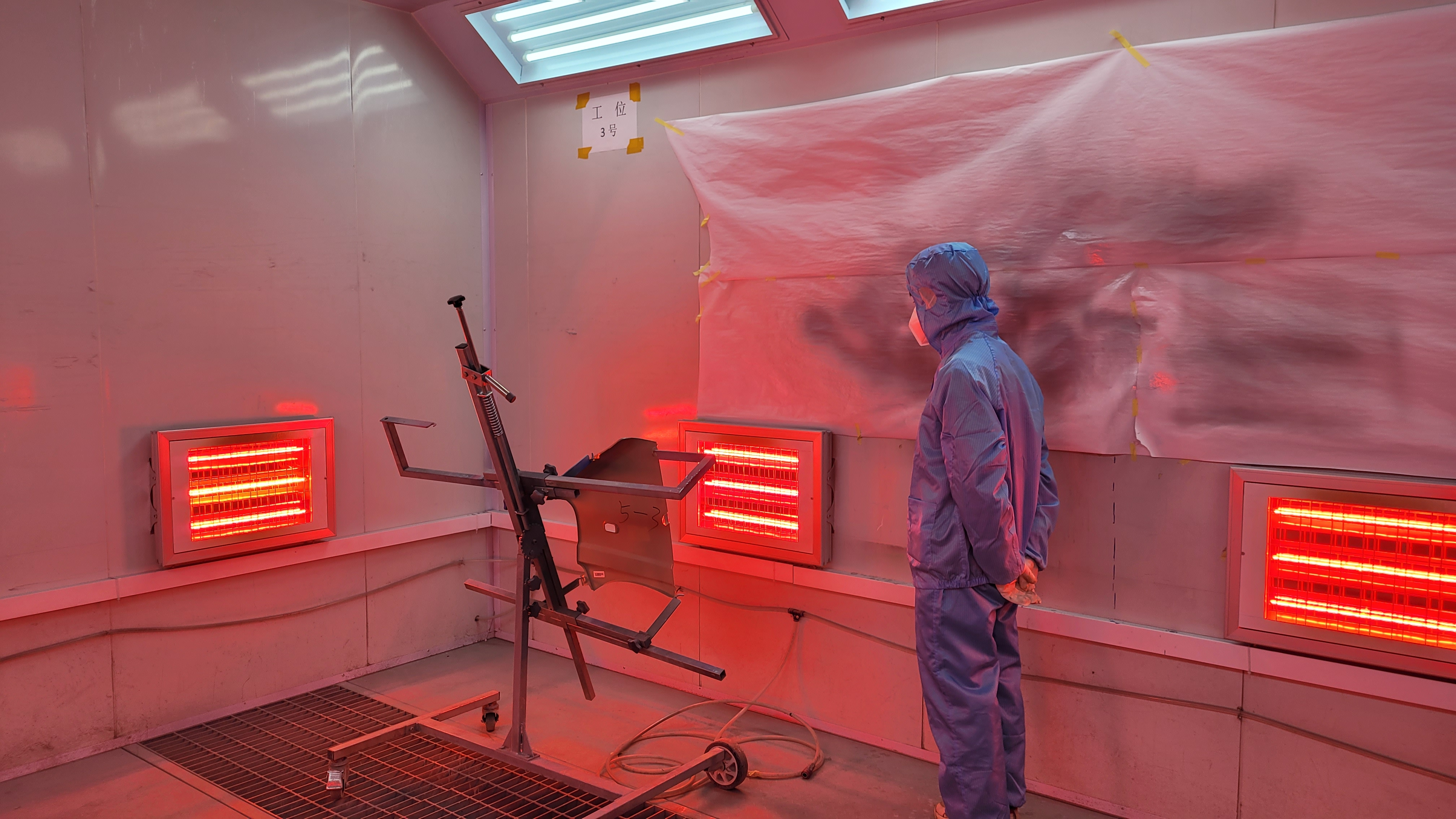 此實(shí)訓(xùn)室是兼鈑金、噴涂于一體的實(shí)訓(xùn)室,內(nèi)配有噴漆房、噴漆機(jī)、噴漆槍、普通和高性能噴漆、烘干箱、鈑金工作臺(tái)等,學(xué)生可以在真實(shí)且安全的壞境下練習(xí)和應(yīng)用鈑噴技術(shù),包括車身修補(bǔ)、涂裝物表面處理、烘干和噴漆圖層的評(píng)估等,是實(shí)訓(xùn)中心必要的設(shè)施之一。