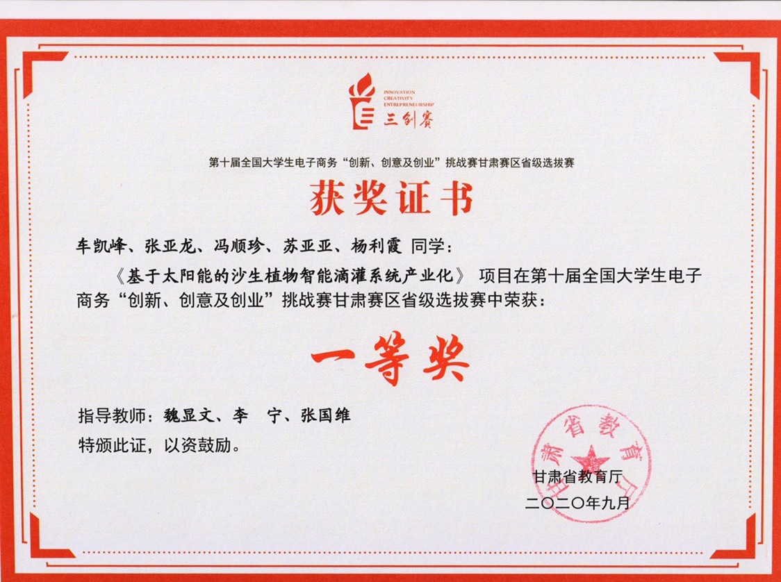 第十屆全國大學生電子商務(wù)“創(chuàng)新、創(chuàng)意及創(chuàng)業(yè)”挑戰(zhàn)賽甘肅賽區(qū)省級選拔賽一等獎