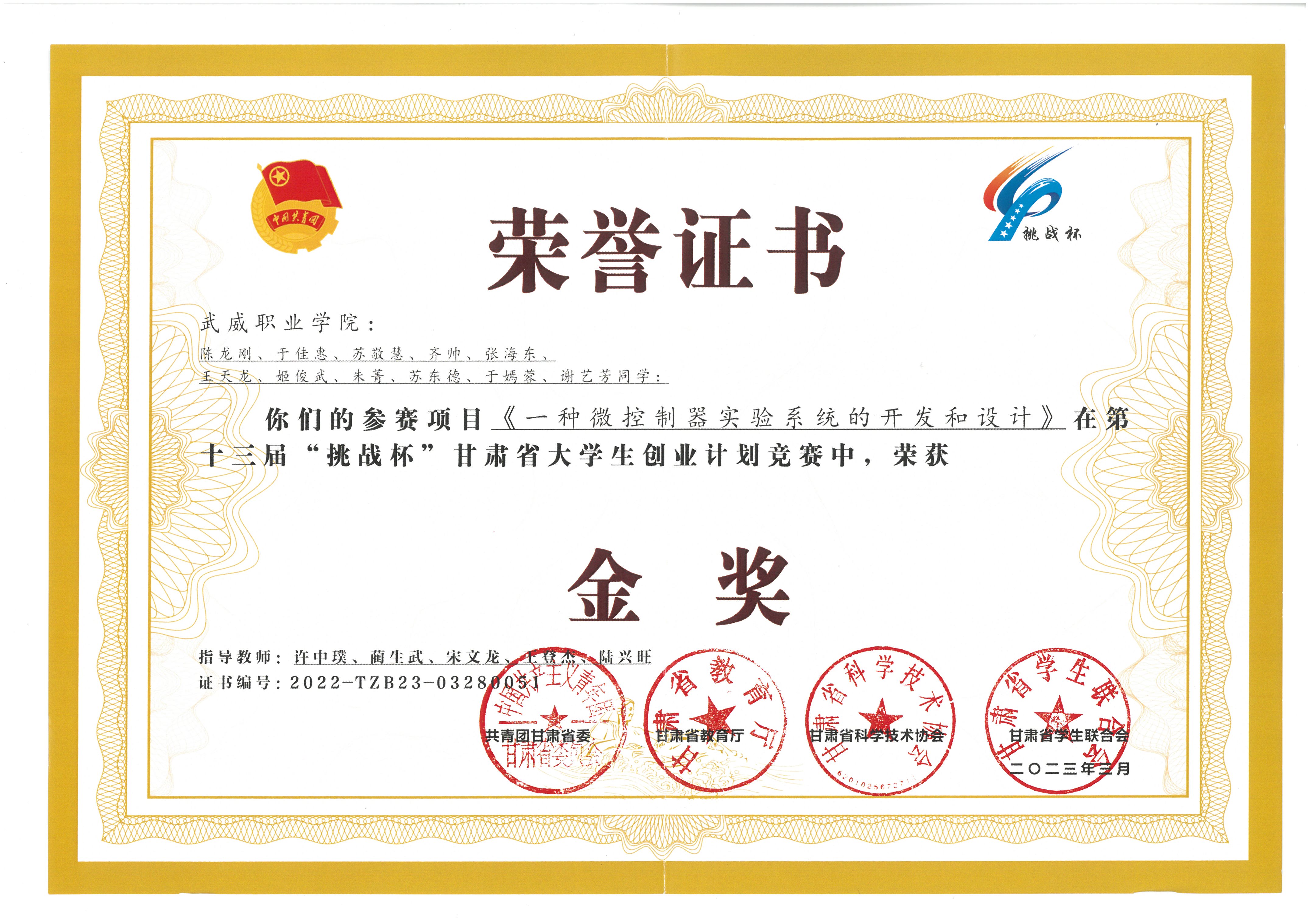 2023年十三屆挑戰(zhàn)杯甘肅省大學(xué)生創(chuàng)業(yè)計(jì)劃金獎